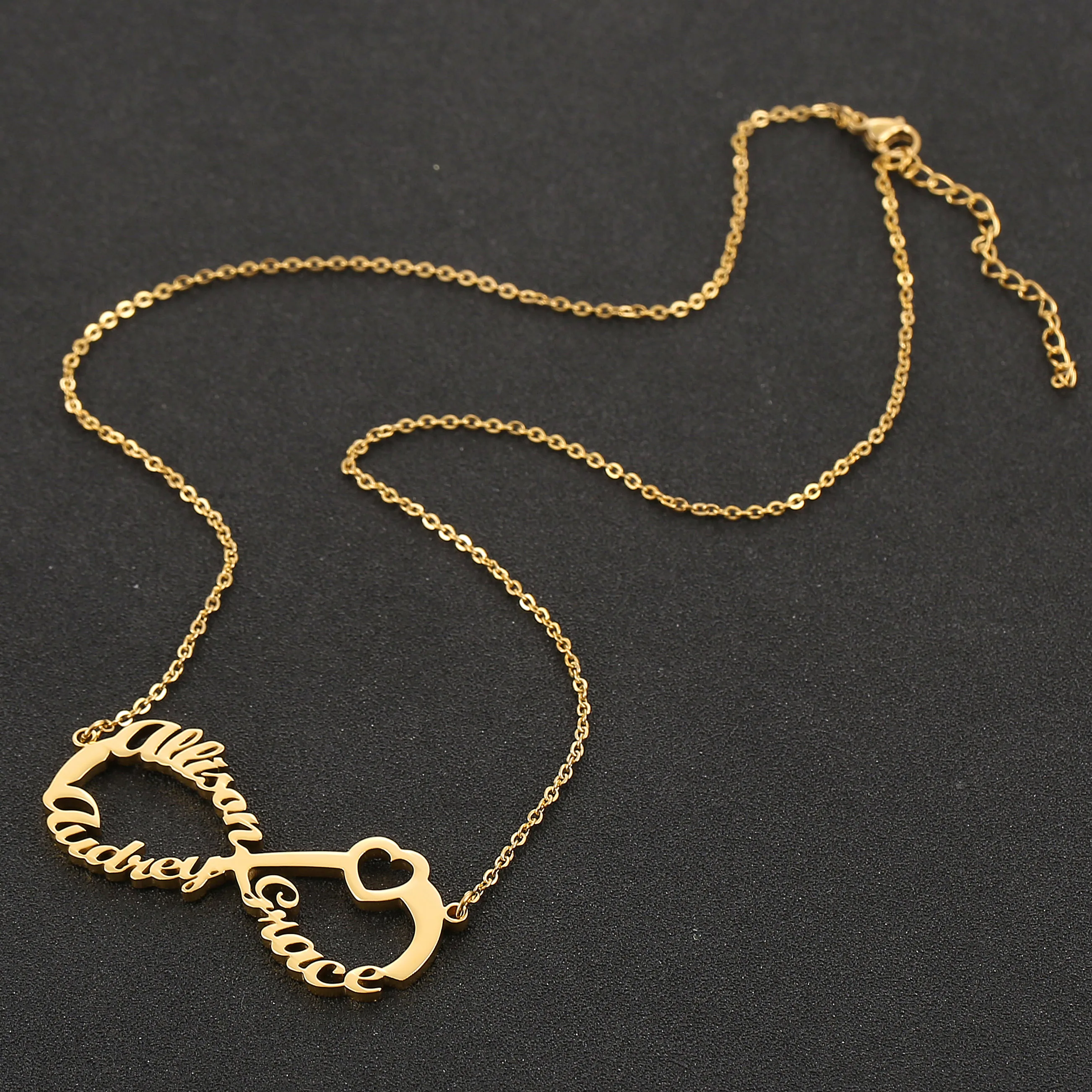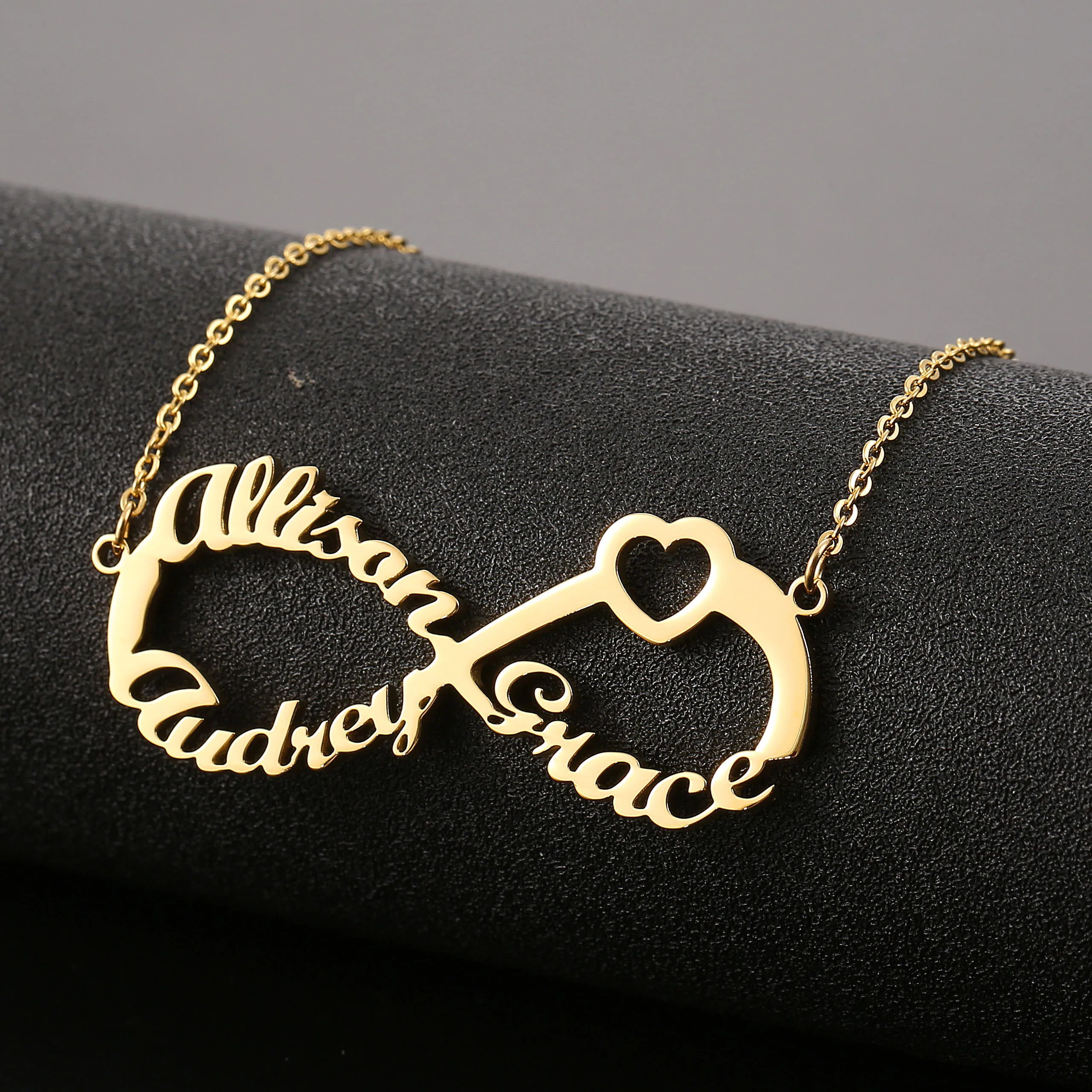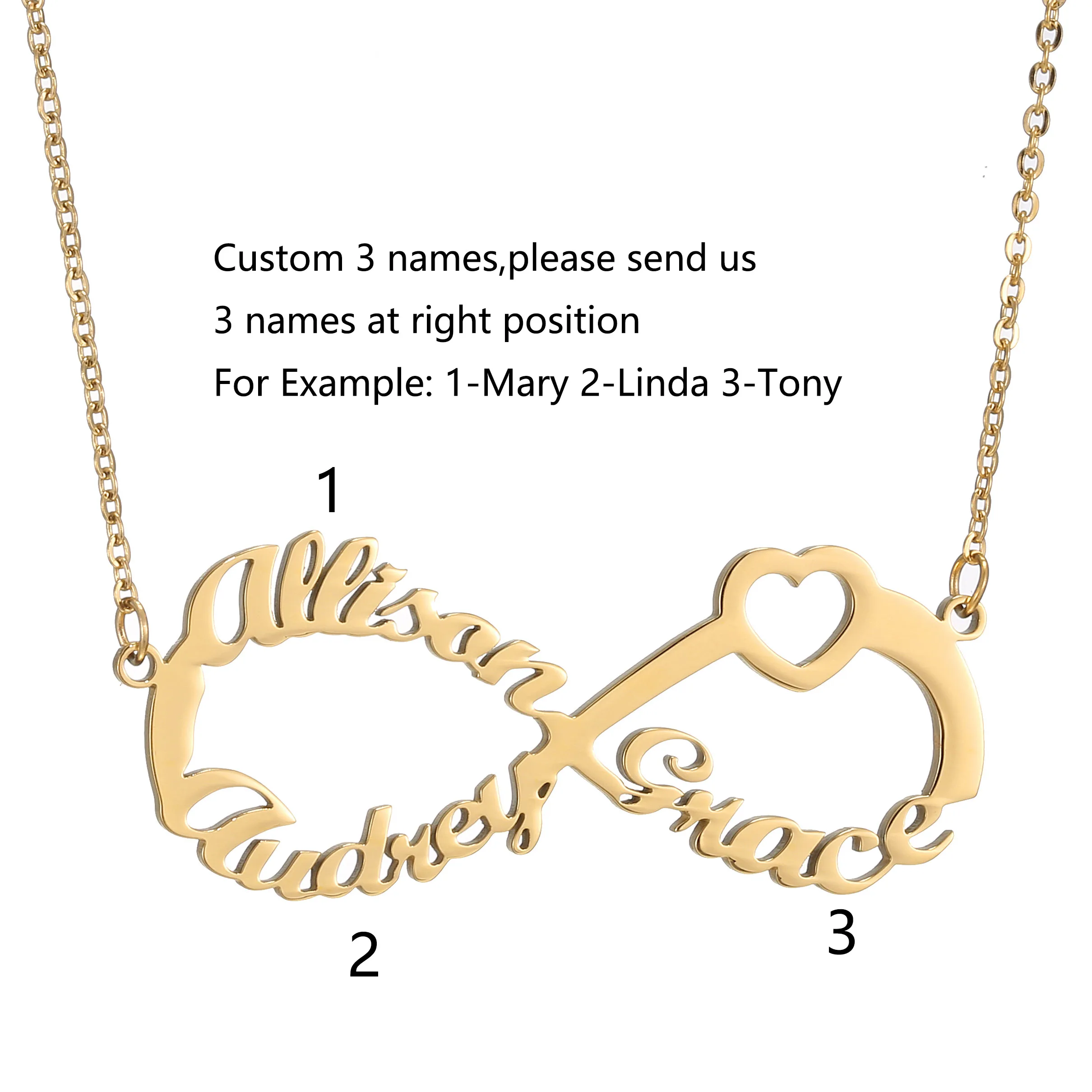 Ожерелье с именем на заказ бесконечность, персонализированное ожерелье с 3 именами в форме сердца из нержавеющей стали, ожерелье с табличкой с именем, Подарки Для Семьи мамы, папы