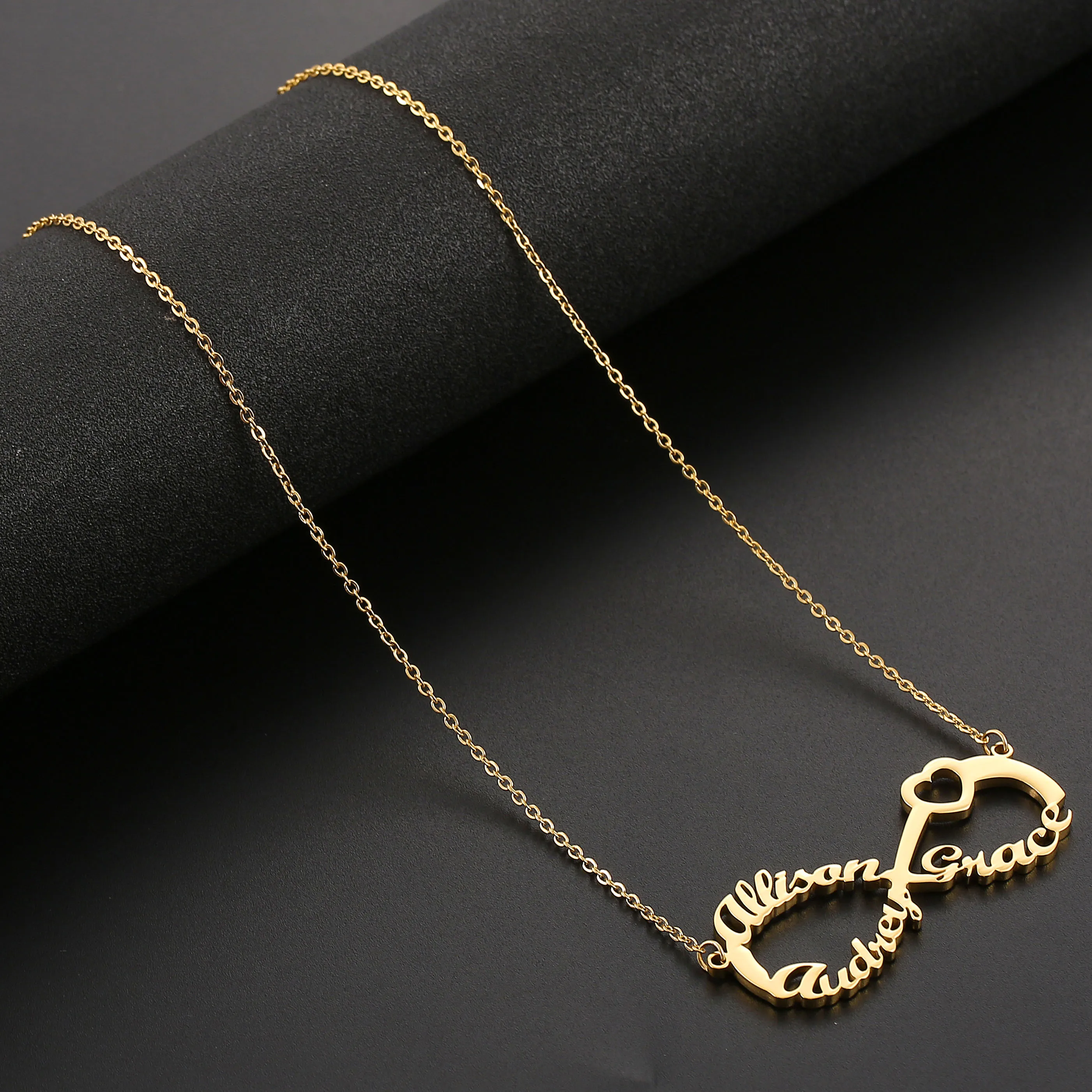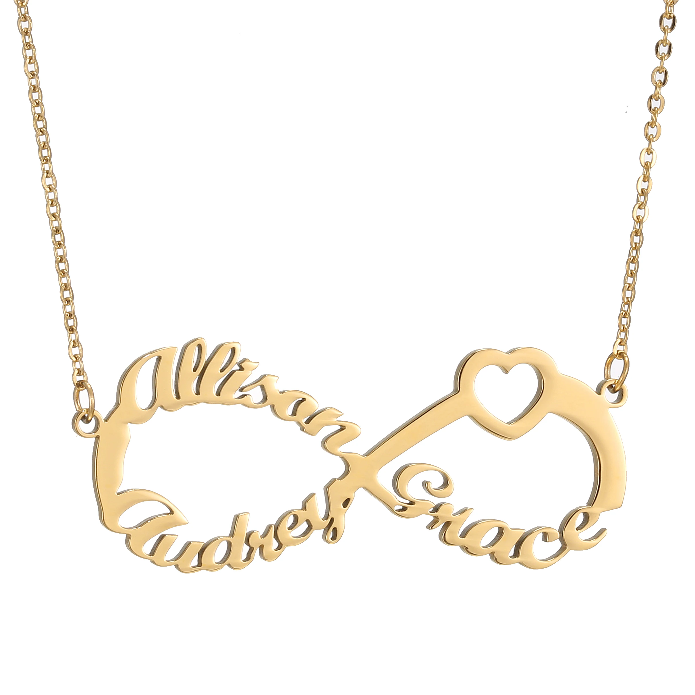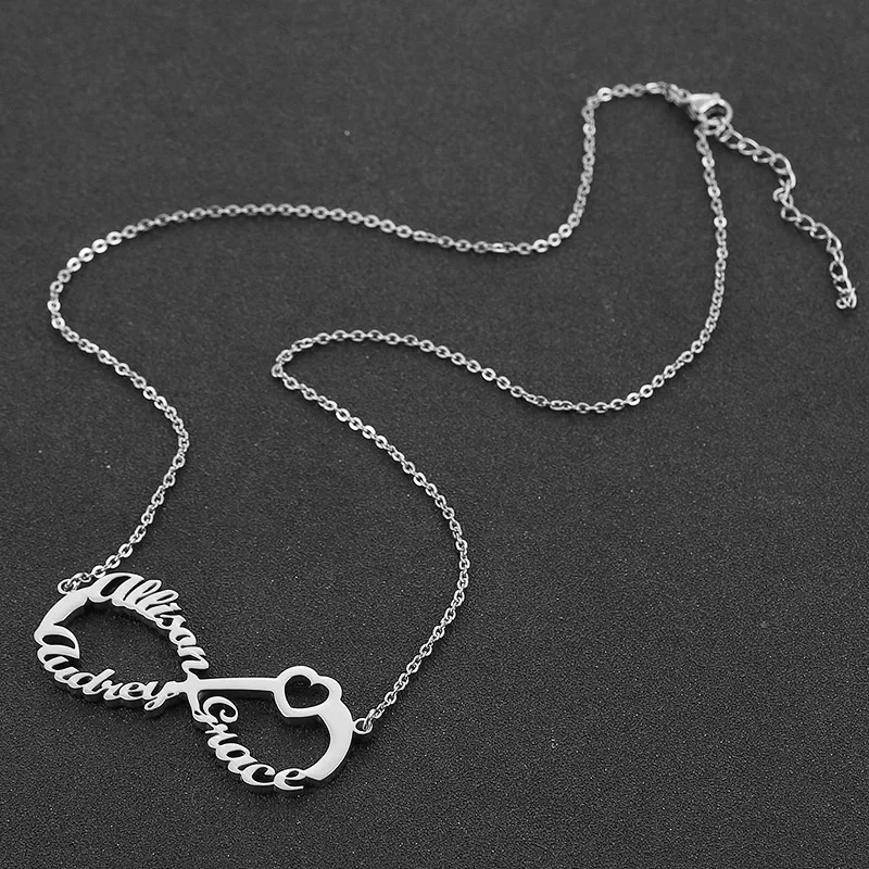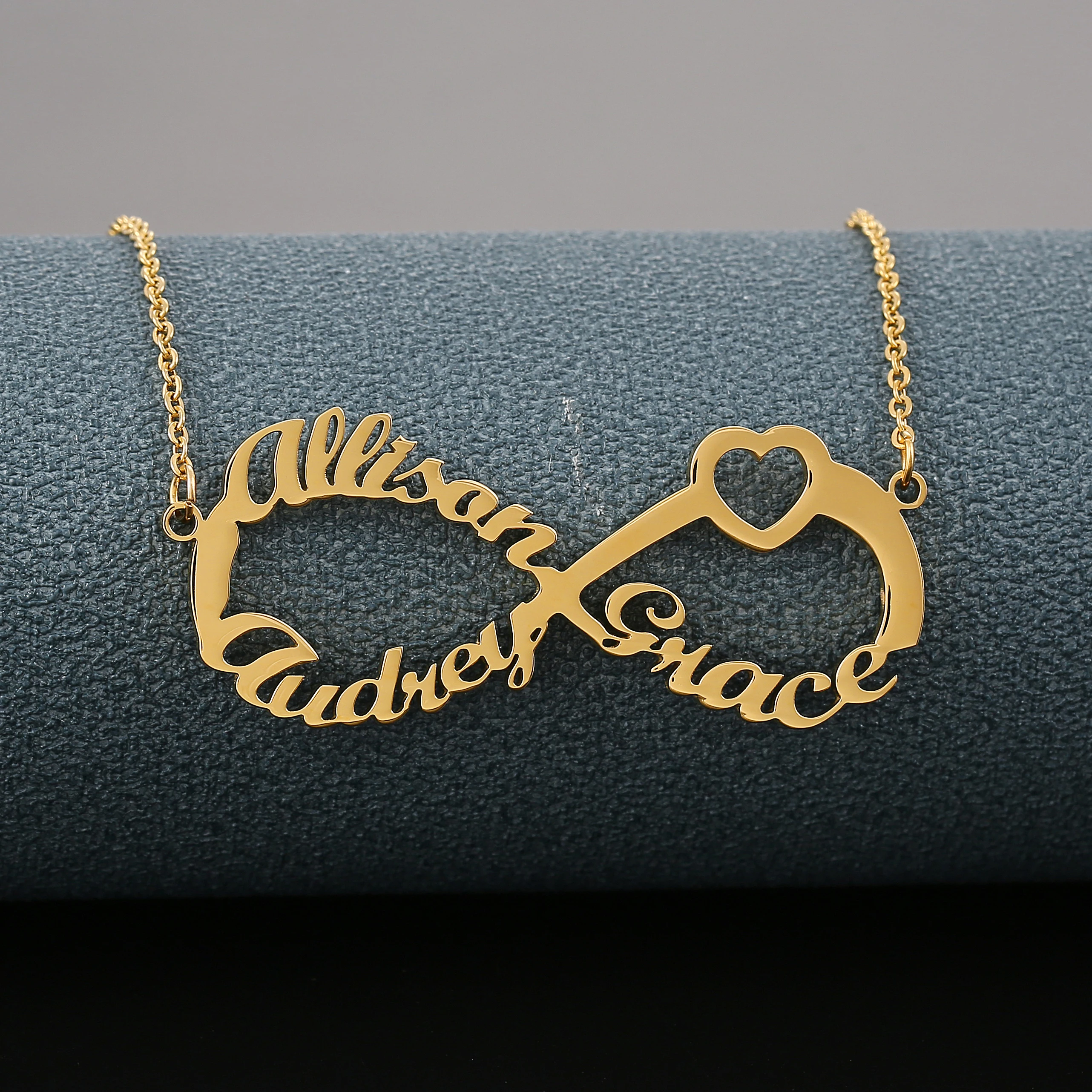 Ожерелье с именем на заказ бесконечность, персонализированное ожерелье с 3 именами в форме сердца из нержавеющей стали, ожерелье с табличкой с именем, Подарки Для Семьи мамы, папы