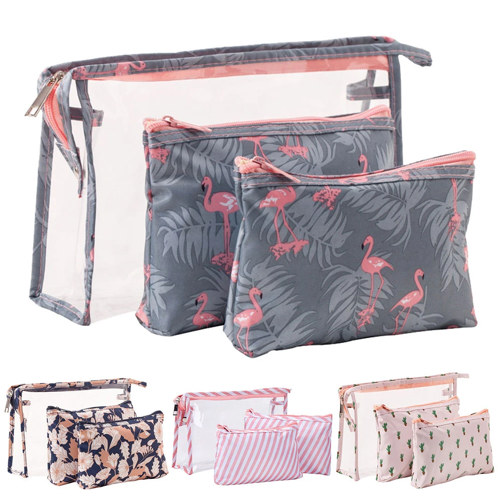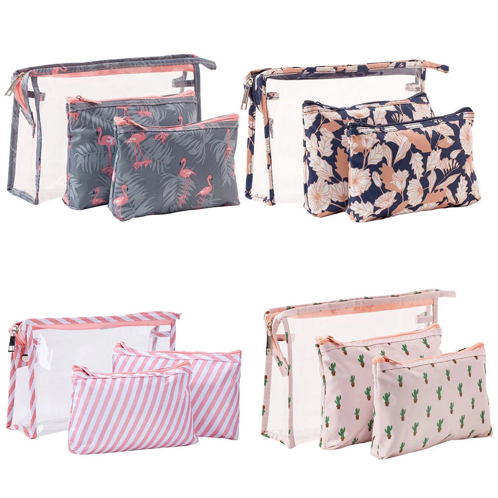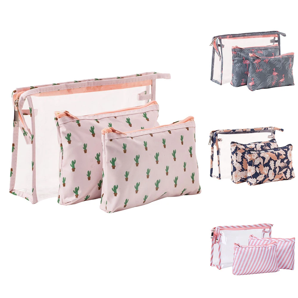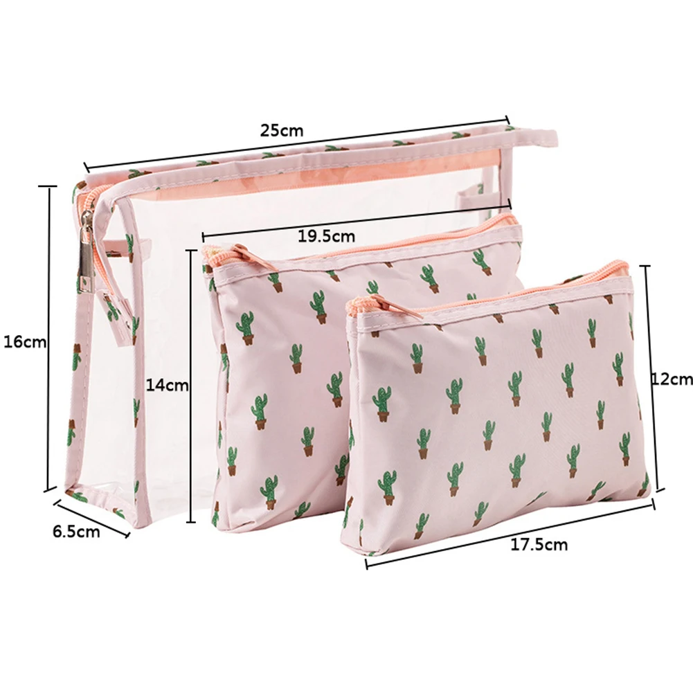Красивый чехол, большая вместительность, 3 шт., фламинго, кактус, в полоску, косметичка, для женщин, для путешествий, несессер, портативный, косметичка, Kosmetyczka