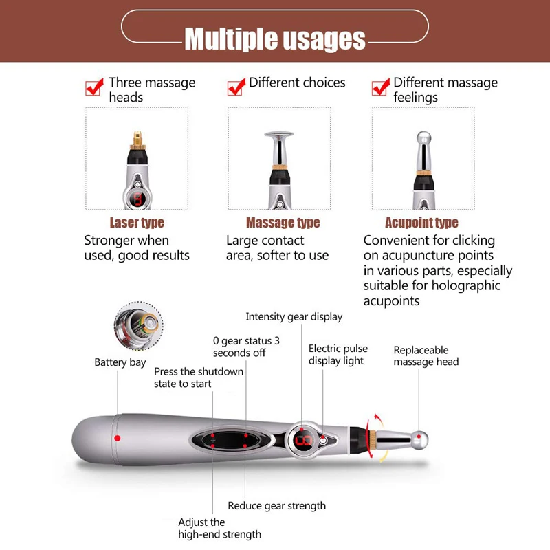 3 в 1 Электрический Лечебный иглоукалывание ручка с магнитом терапии Массажная ручка боли здравоохранения меридианная энергетическая Фитнес тела тренер