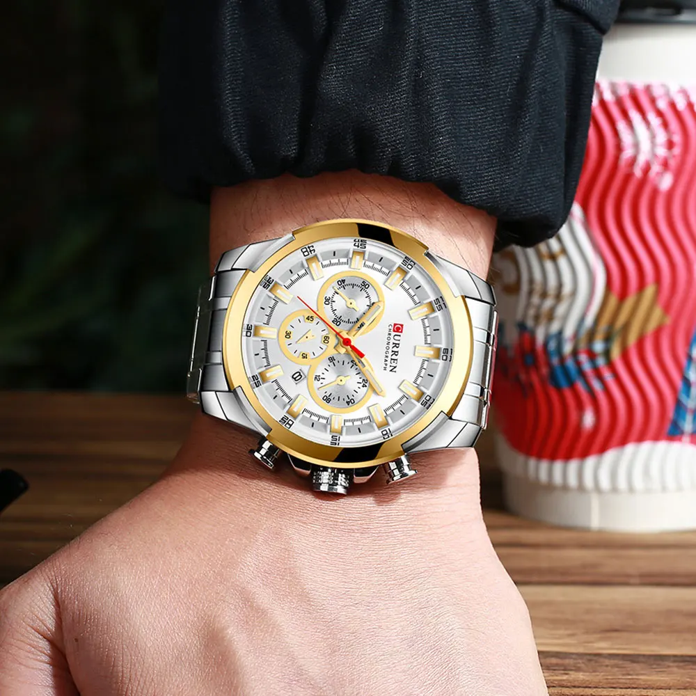 CURREN Модные Повседневные часы из нержавеющей стали, мужские кварцевые наручные часы, хронограф, спортивные часы, светящиеся указатели, мужские часы
