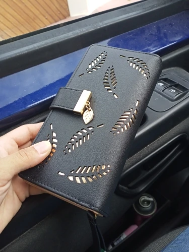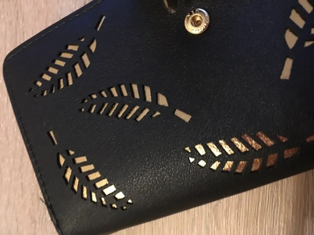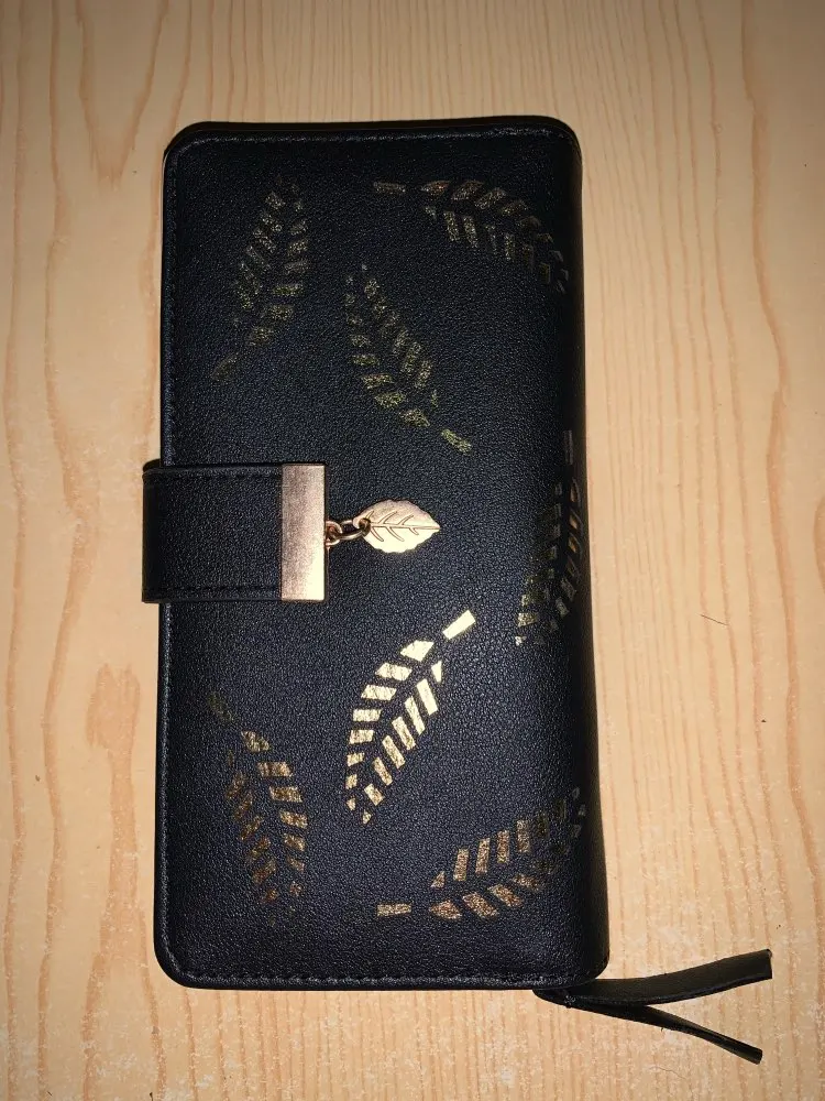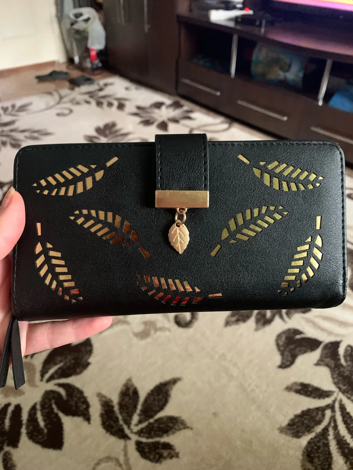 Женский кошелек из искусственной кожи, Дамский удлиненный бумажник с золотыми листьями, сумочка для мелочи, кредитница, клатч