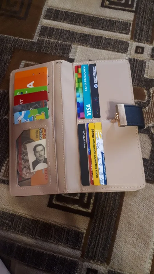 Отличный кошелёк, жена довольна. Очень вместительный, по размеру почти, как клатч. Материал качественный как внешний, так и внутри.