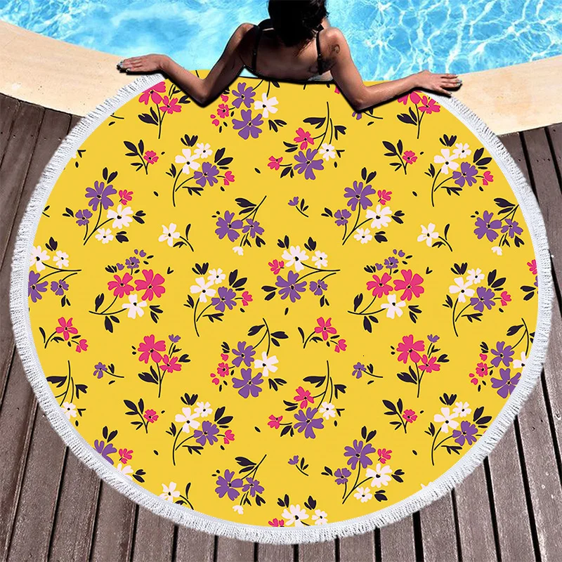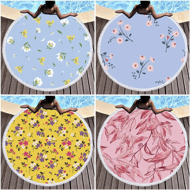Пляжное полотенце с цветочным принтом 150 см, украшение из микрофибры, Летний Пляжный богемский коврик Toallas, круглое Туристическое полотенце для ванной комнаты для взрослых