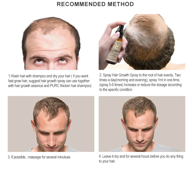 2. Распылите спрей для роста волос до корня волос равномерно, 2 раза в день (утренний и вечерний), спрей 1 мл один раз