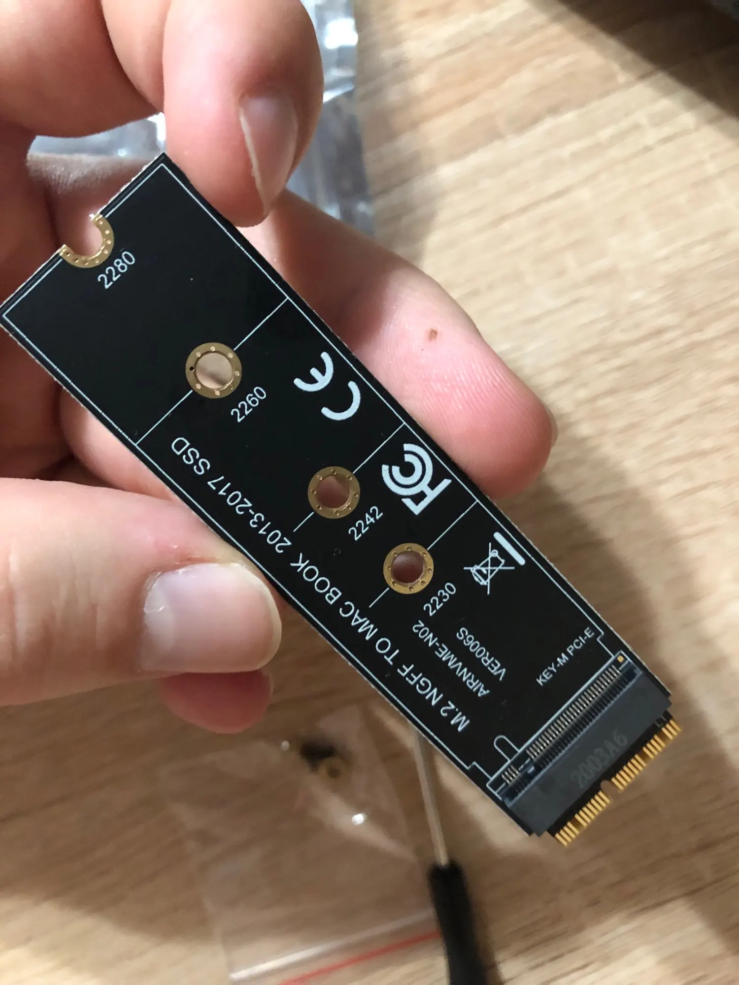 Пришло быстро в составе общей посылки. Качество на уровне, поставил на замену адаптеру Sintech. Синтечевский адаптер вышел почти в четыре раза дороже, при этом он толще (сам разъём m.2 имеет большую высоту), для Pro это не критично, но в MBA - SSD упирался в крышку. Глубокий сон с новым адаптером работает, перезагрузка - тоже. По этому не вижу смысл покупать дорогой адаптер от Sintech. Если после нескольких месяцев использования вылезут косяки - дополню отзыв. И да, лучше наклеить каптоновый скотч, как у меня. Это убережёт от КЗ. Покупкой доволен.