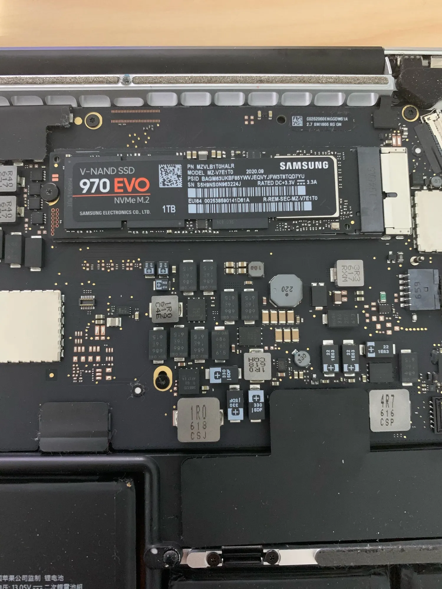 Установлен вместе с 970 EVO Plus в macbook air early 2014. Проблем ни с установкой в ноутбук, ни с установкой Mac OS ни даже с установкой Windows 10 через boot camp не возникало. Спящий режим работает. В целом, с неродным диском все работает ровно так же, как и с родным.