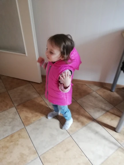 śliczny bezrękawnik, zamówione 2.02 przyszło 5.03 do Niemiec. rozmiar 7t wypada na 122cm. wszystko ładnie- bez zapachu, wystających nitek, wewnątrz bawełna, prawie że można nosić na dwie strony. polecam, zamówię jeszcze raz