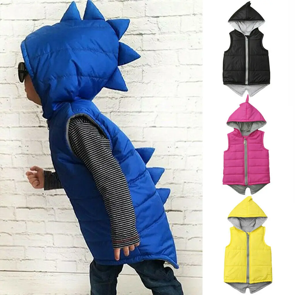 Жилет без рукавов, на молнии, для мальчиков и девочек, теплая верхняя одежда, жилетка с динозавром