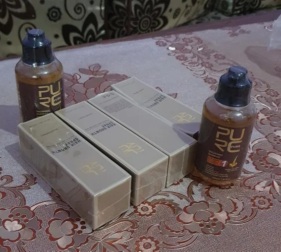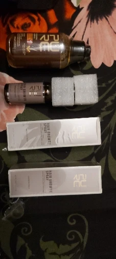 Заказываю здесь не первый раз. Продавец надёжный. В этом наборе все миниатюрное (видимо для точечного применения ). У спрея почти нет запаха, шампунь имеет слабый довольно приятный аромат имбиря. В описании продавец говорит о заметном эффекте за 30 дней применения. Посмотрим