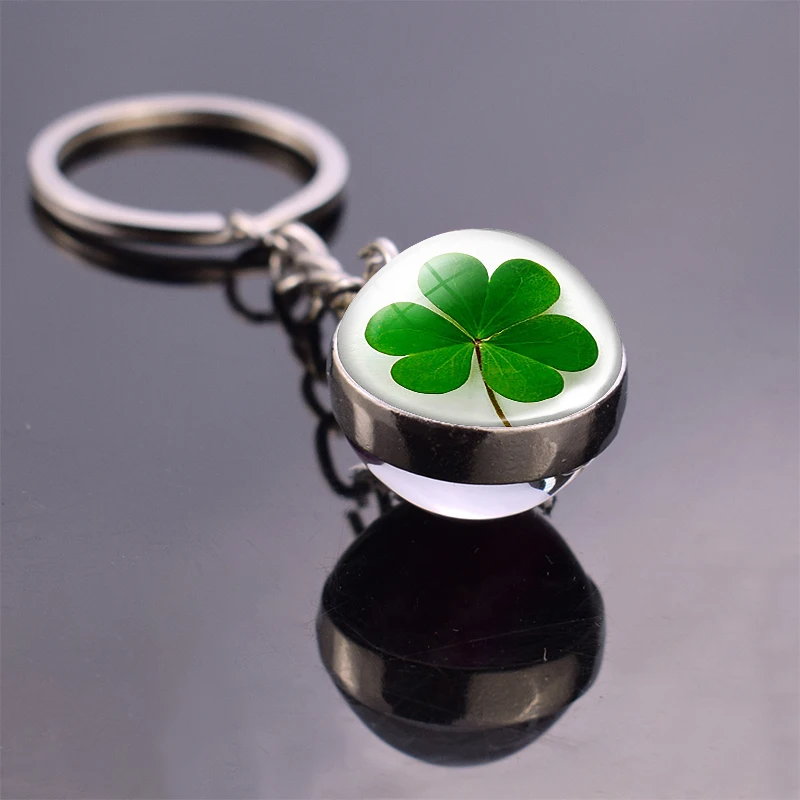 Брелок с четырехлистным клевером, стеклянный двухсторонний кулон с ...