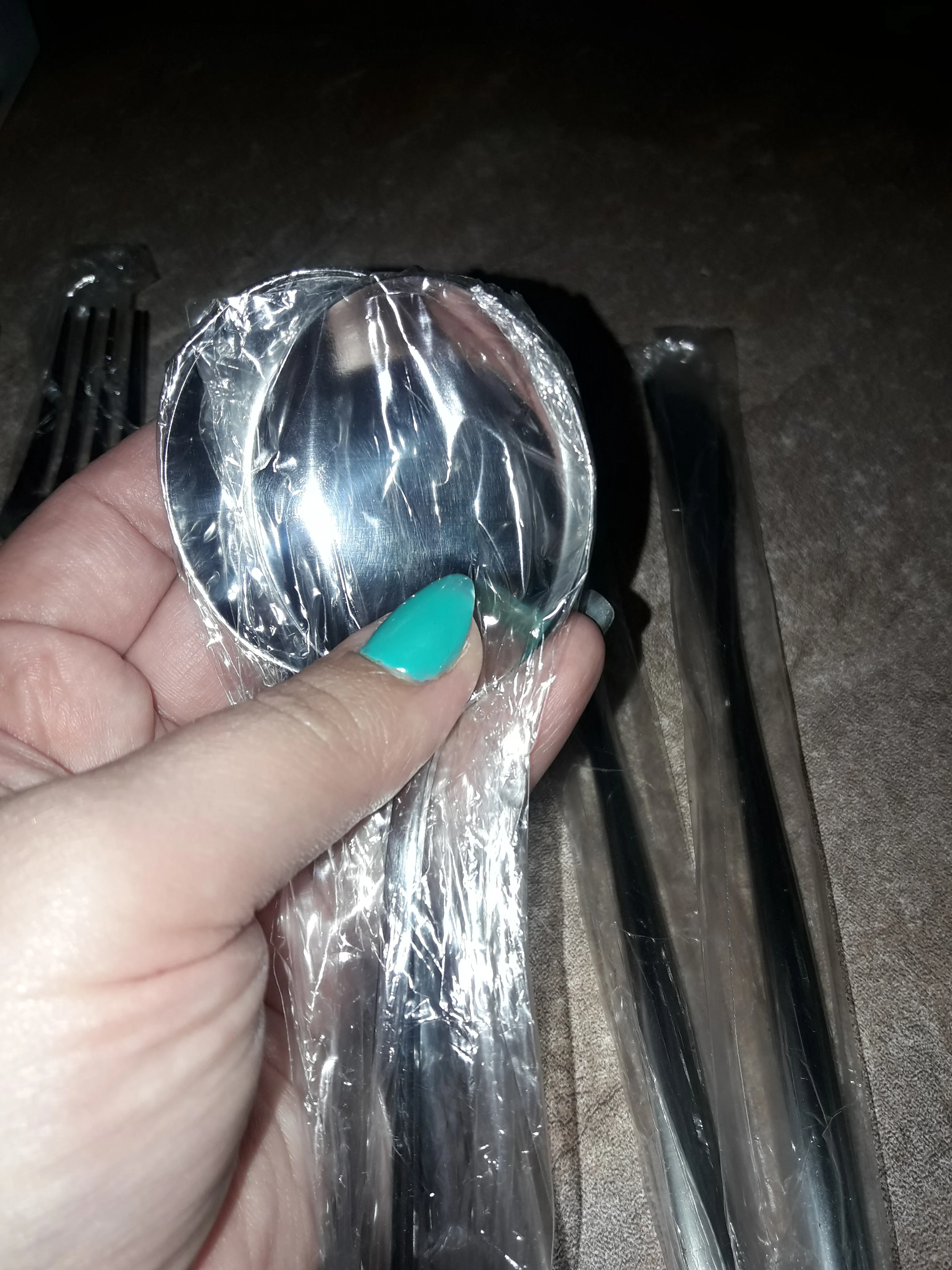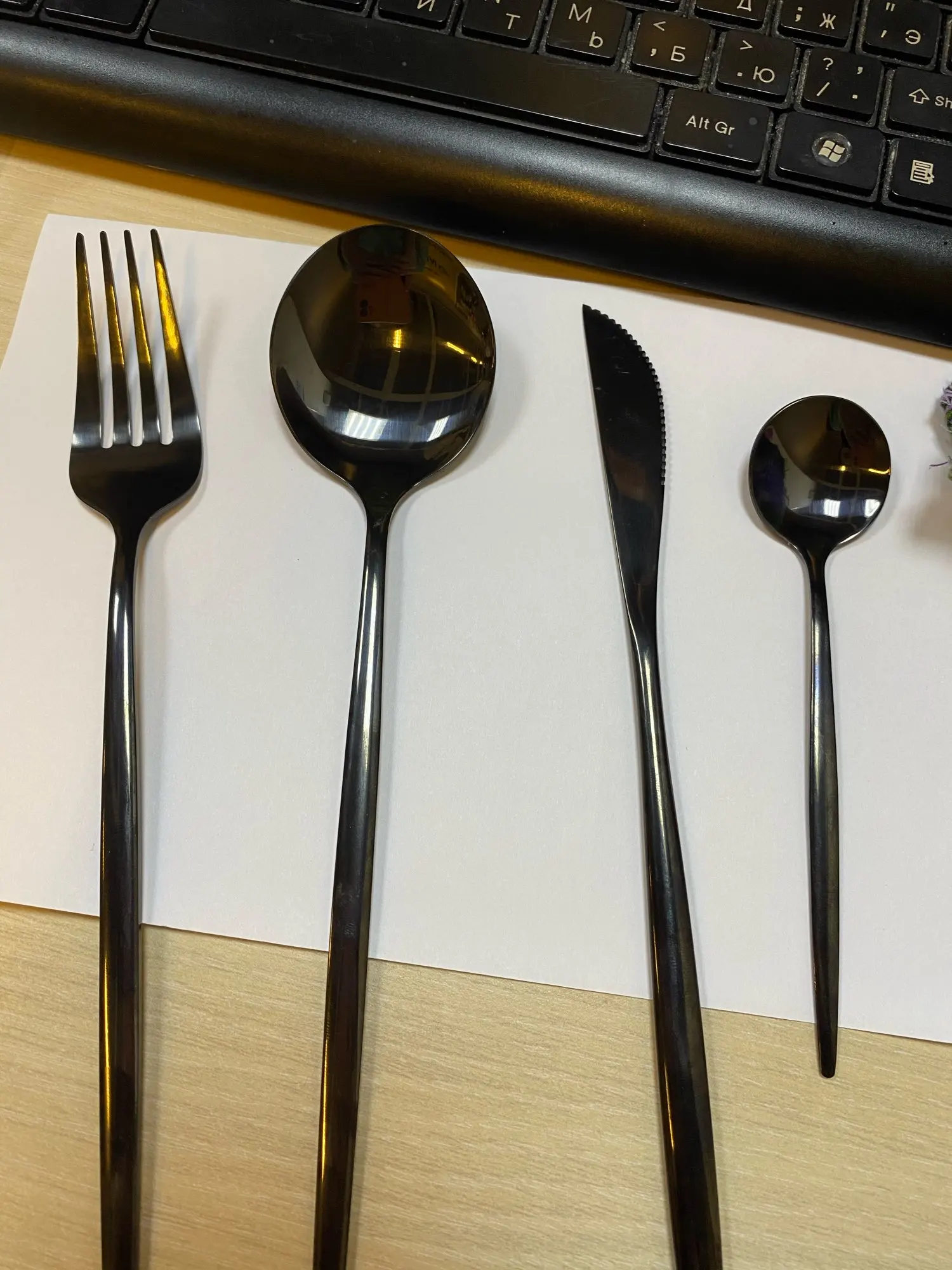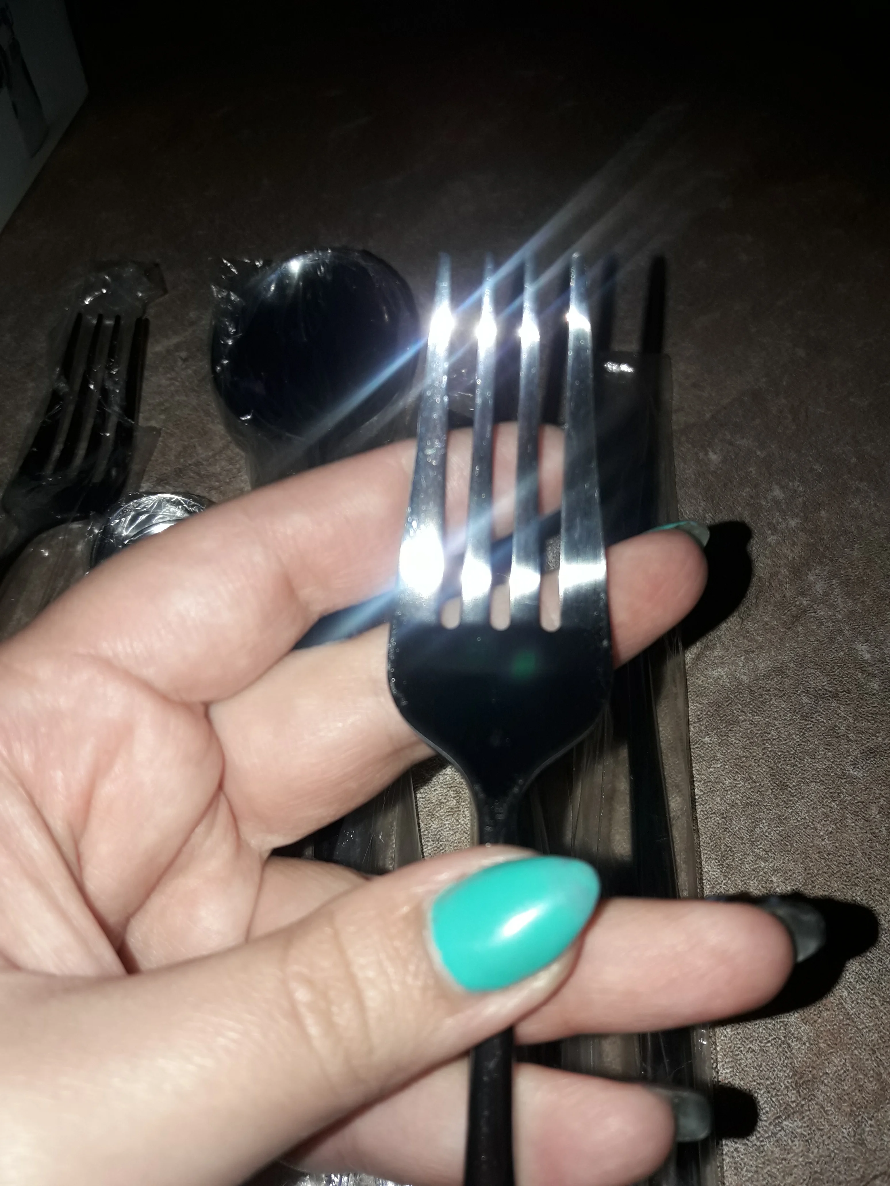 Очень красивые приборы, брала сначала один комплект на тест, всё отлично. Дозаказала ещё 3 комплекта. Есть незначительные непрокрашенные зоны между зубчиков вилки.