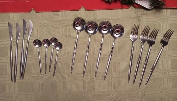 качественное исполнение столовых приборов, сзади с гравировкой стали. удобно держать в руках.