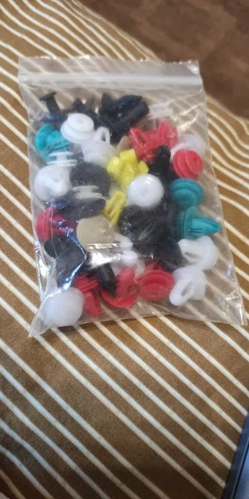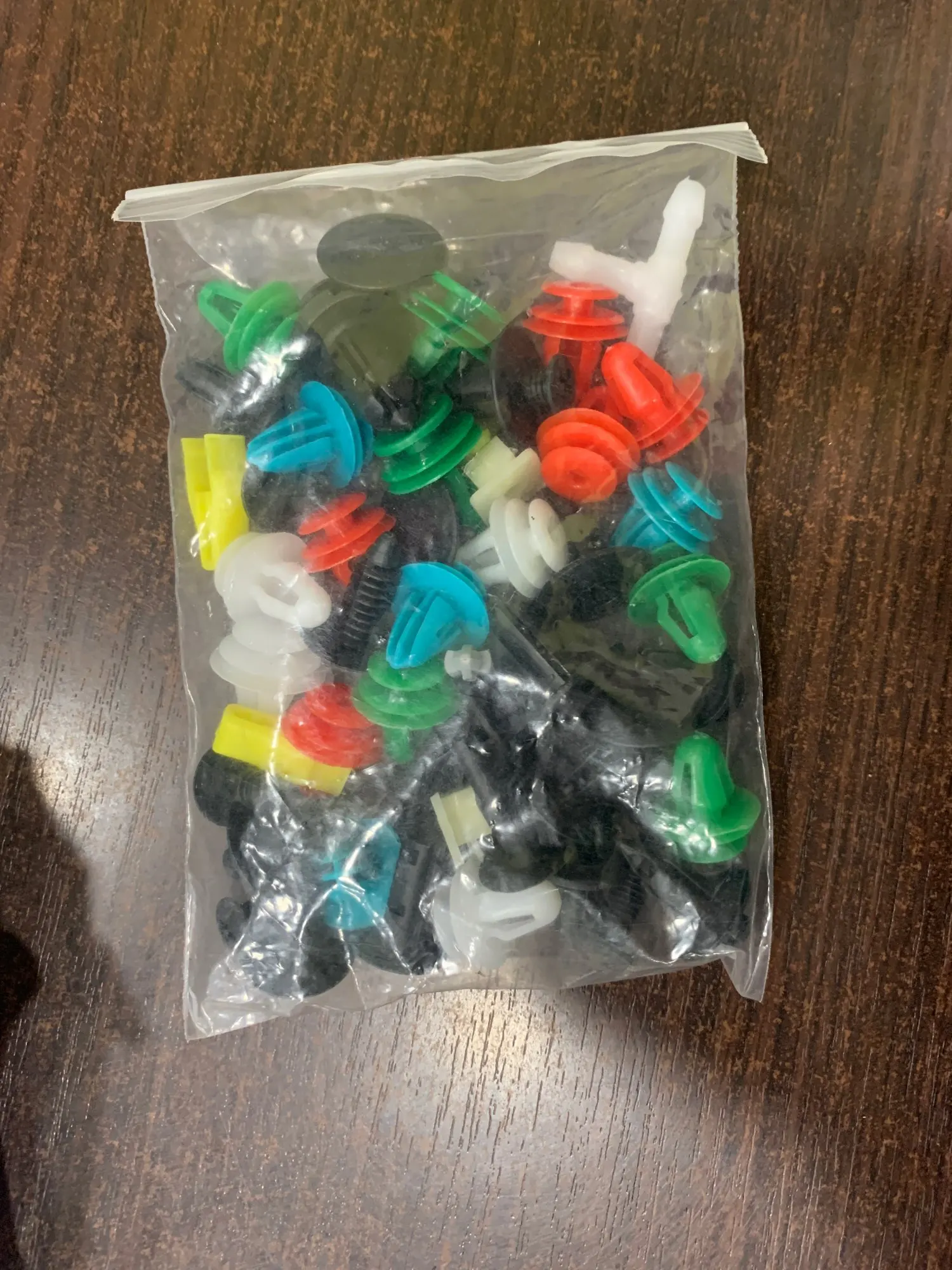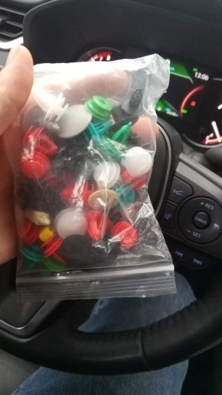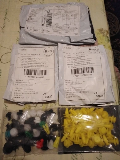 посылка шла долго два месяца , с количеством тоже не всё в порядке если конечно считать клипсу со вставкой как две детали то сходится , но ошибиться может каждый , в целом всё нормально крепеж отличный .