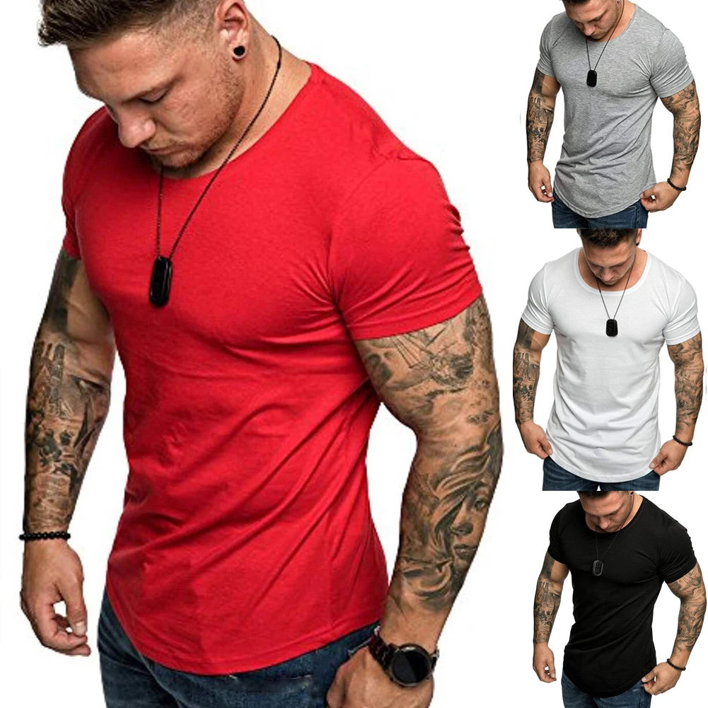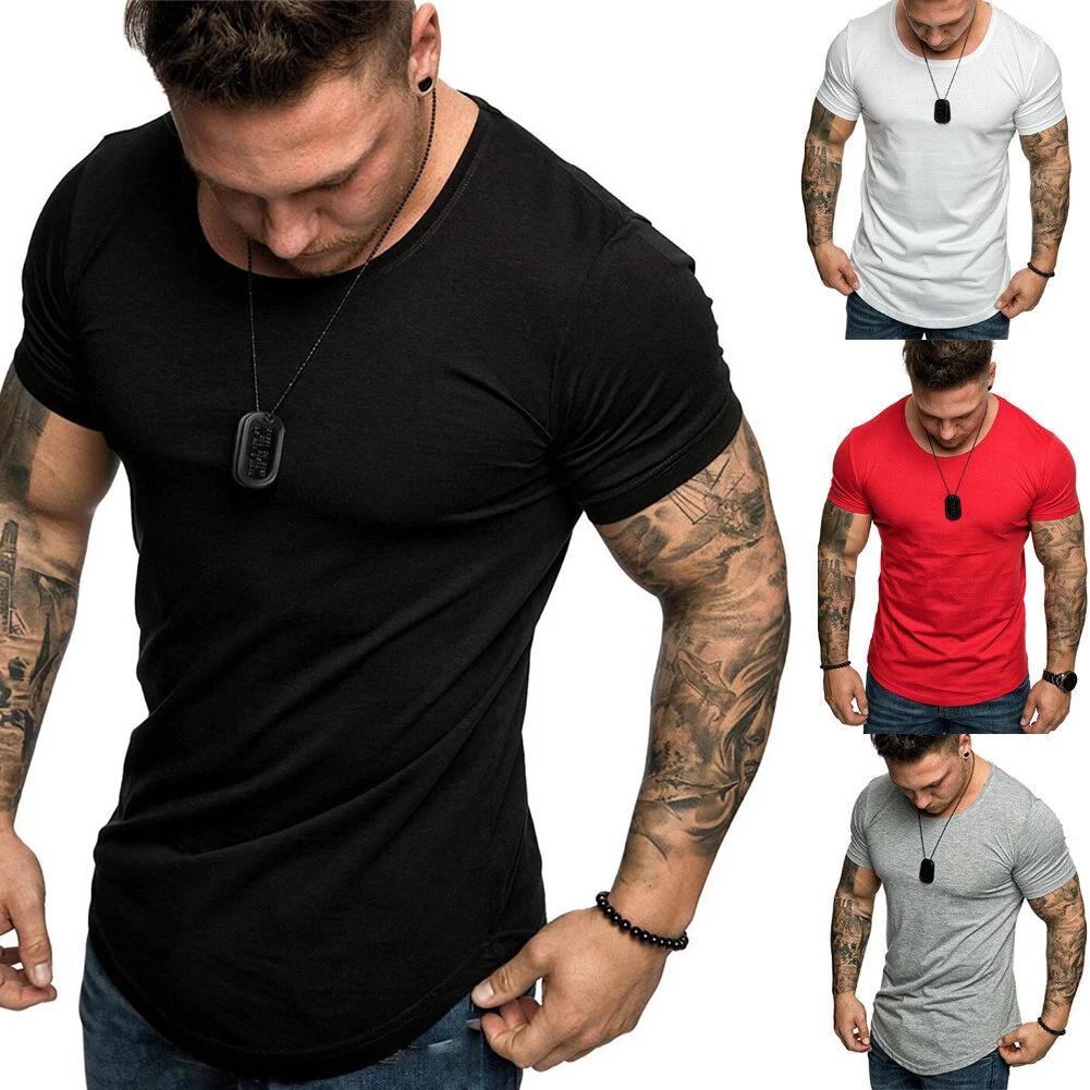 Модная мужская повседневная Приталенная футболка с коротким рукавом для бодибилдинга, футболки