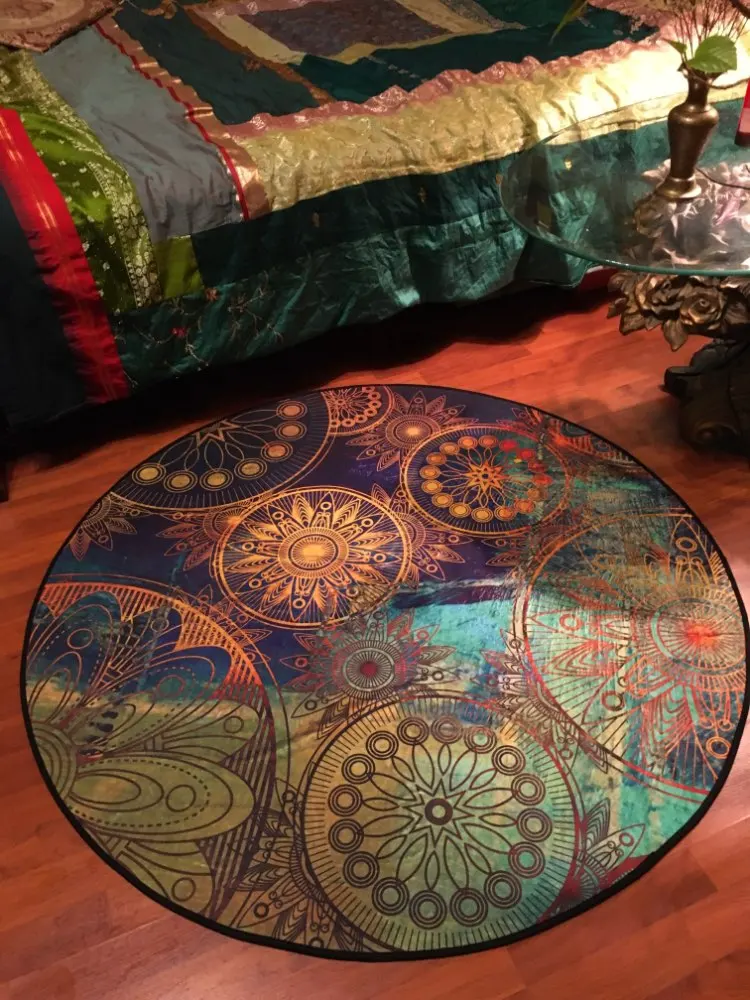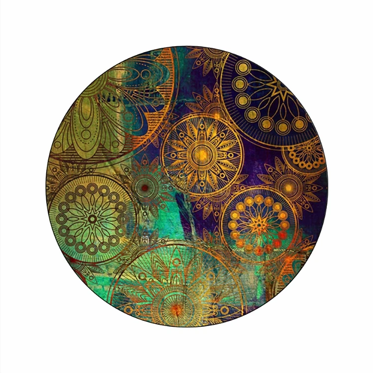 Красочные ковры для спальни, зеленый цветок мандалы, этнический круглый ковер, ковры для гостиной, 100% полиэстер, механическая стирка