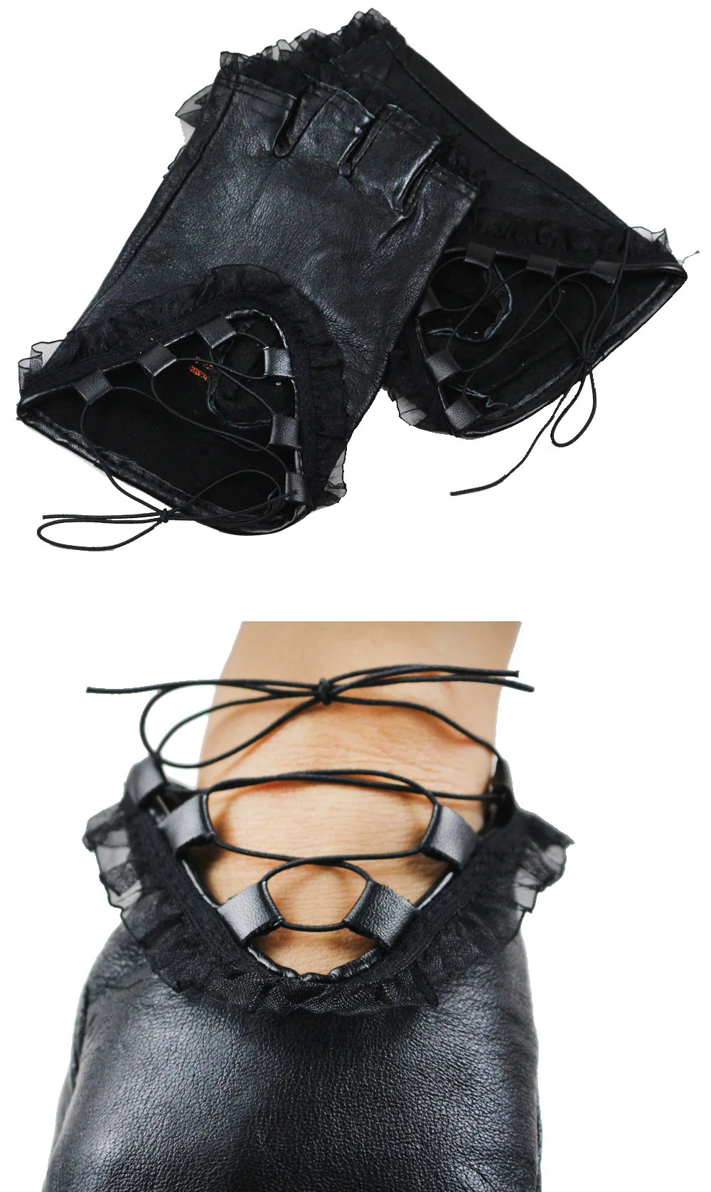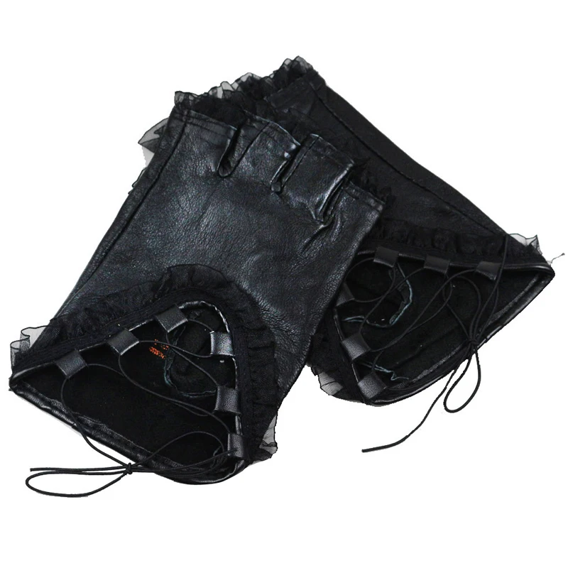 Женские перчатки без пальцев, черные перчатки из натуральной кожи, сексуальные кружевные перчатки без пальцев, модные варежки для девушек, женские перчатки для танцев