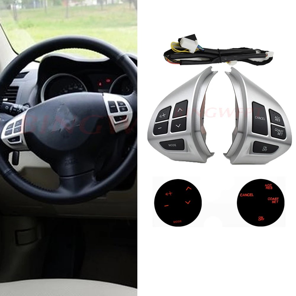 Для Mitsubishi ASX 2007-2012 Outlander кнопки управления рулевым колесом с кабелями Серебряные Кнопки/