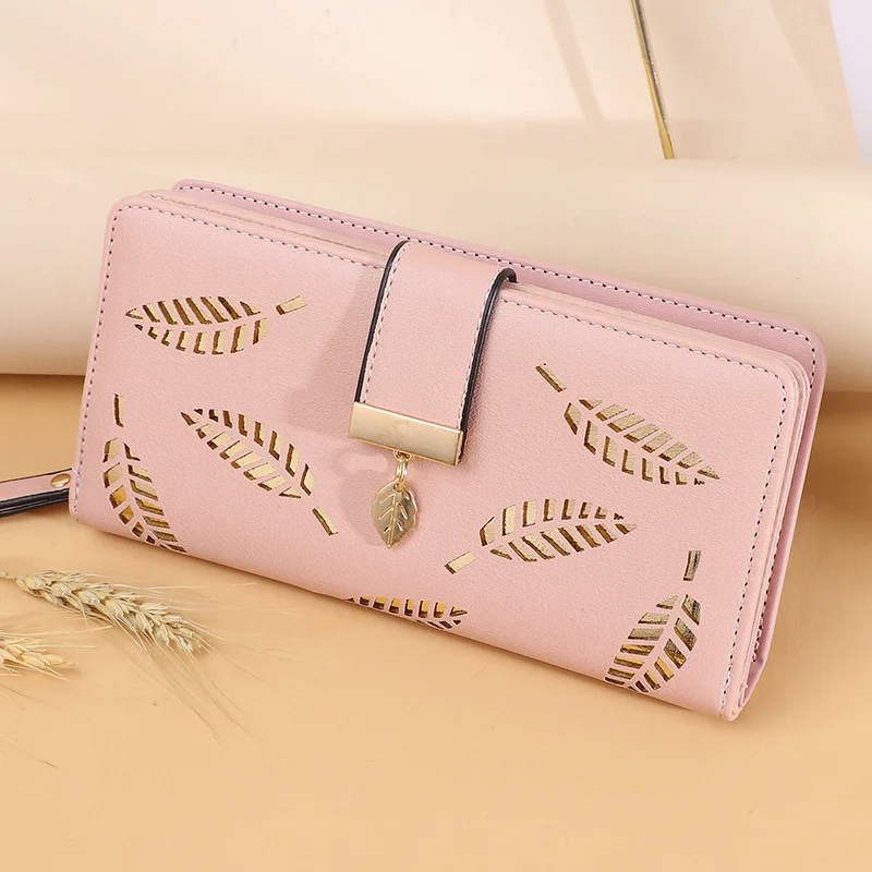 Роскошные брендовые кошельки для женщин 2021, модный длинный кошелек с несколькими кармашками для карт, кошелек с золотыми полыми листьями для монет, многофункциональный универсальный клатч