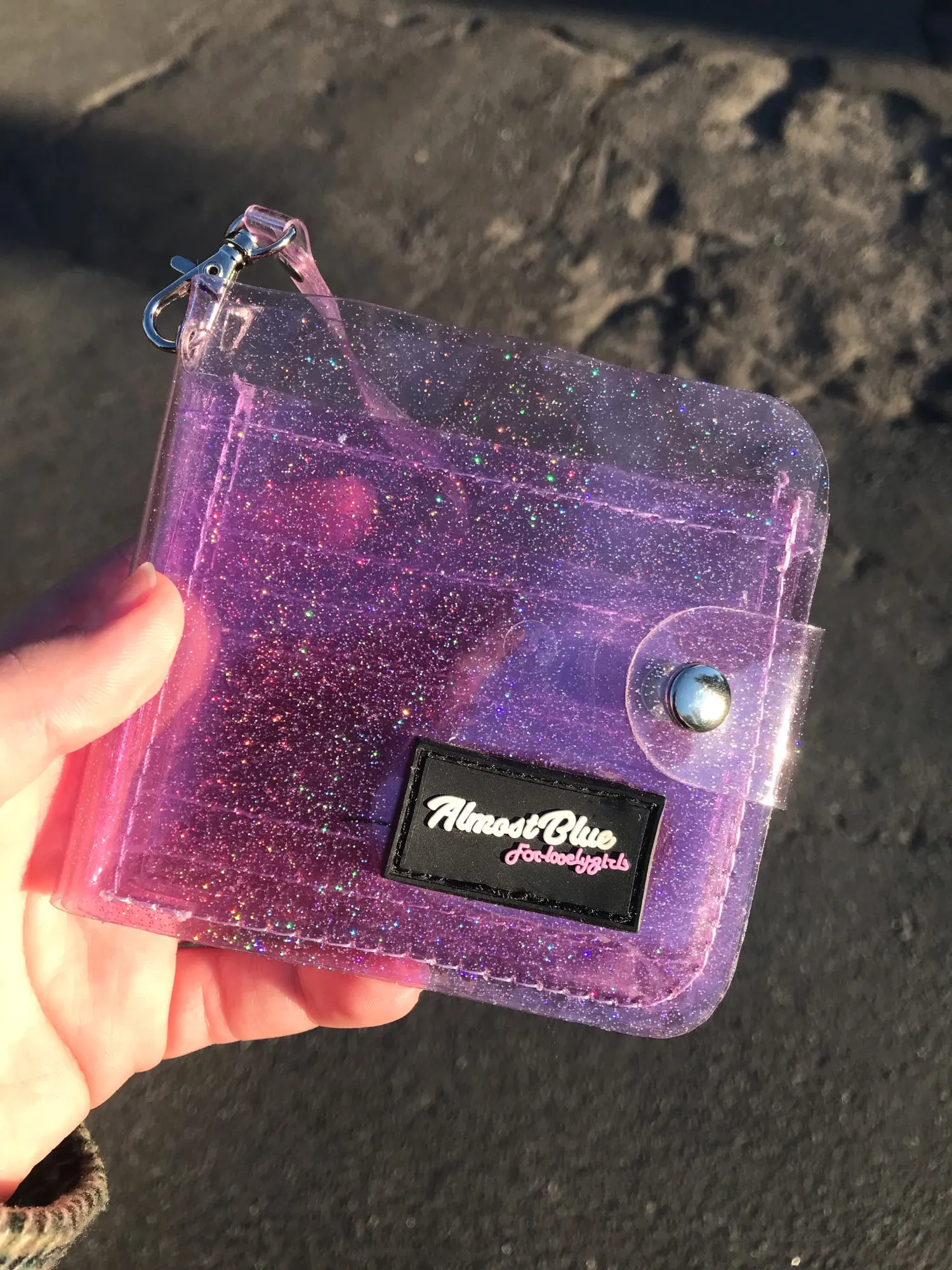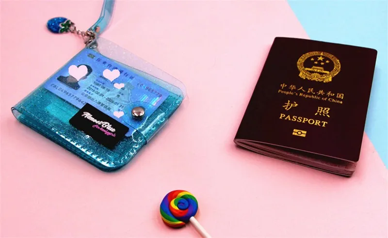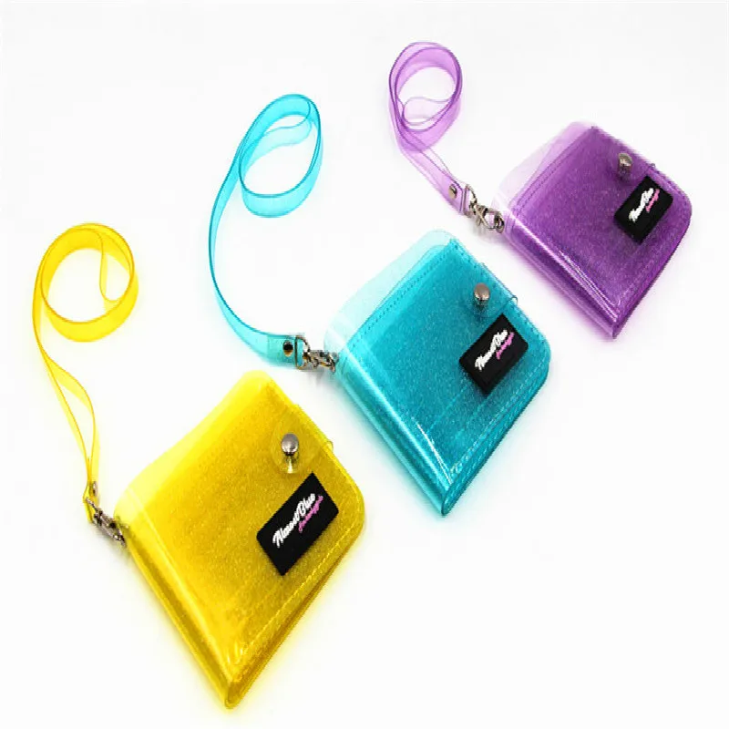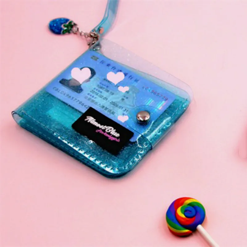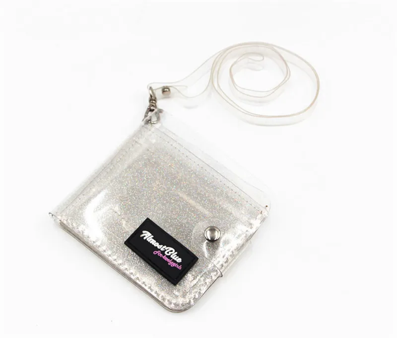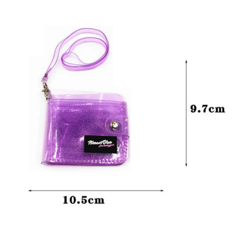 Модный складной кошелек из ПВХ, Короткий держатель для удостоверения личности, Женский кошелек для монет с блестками для девушек, деловой прозрачный ремешок для карт и фотографий