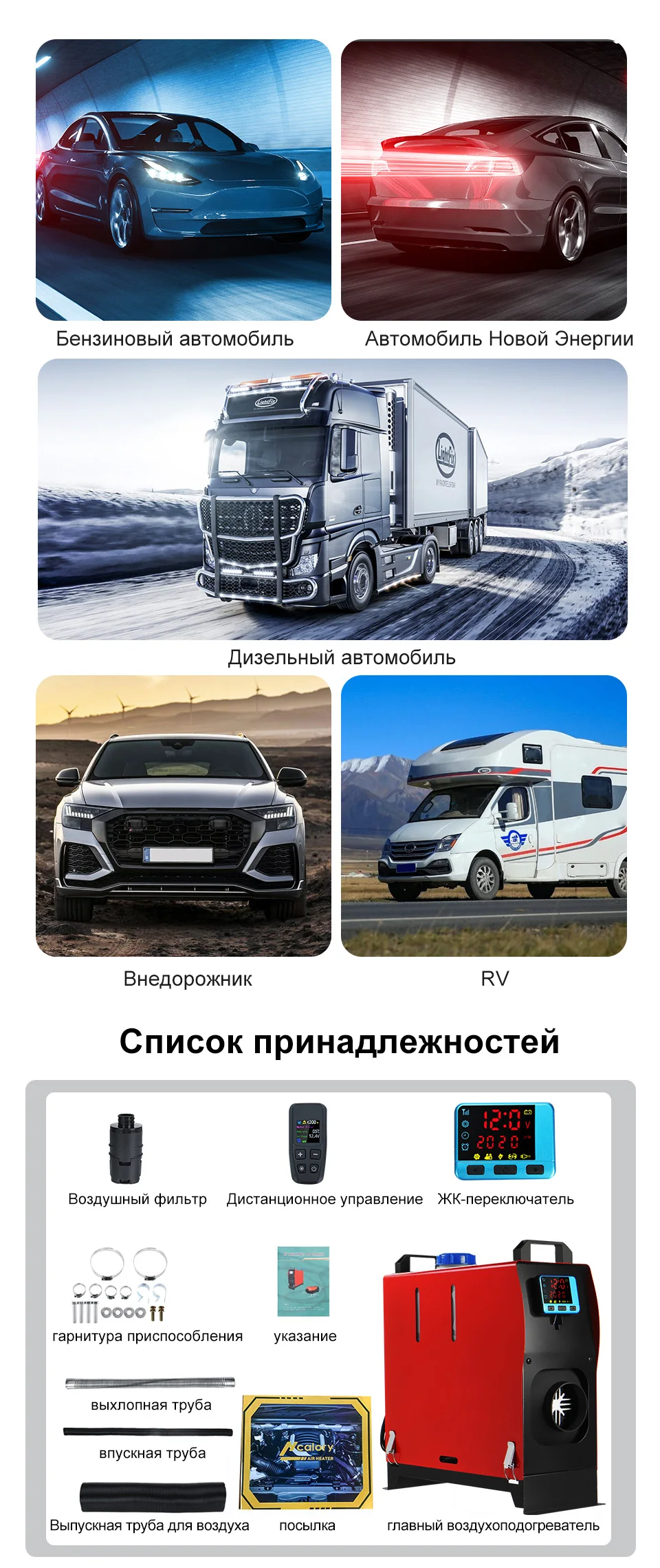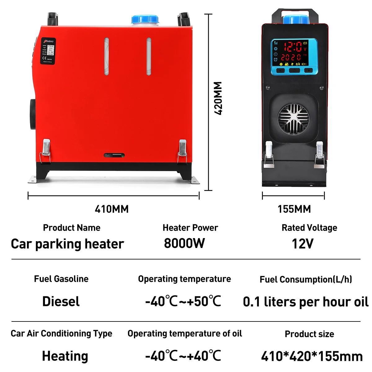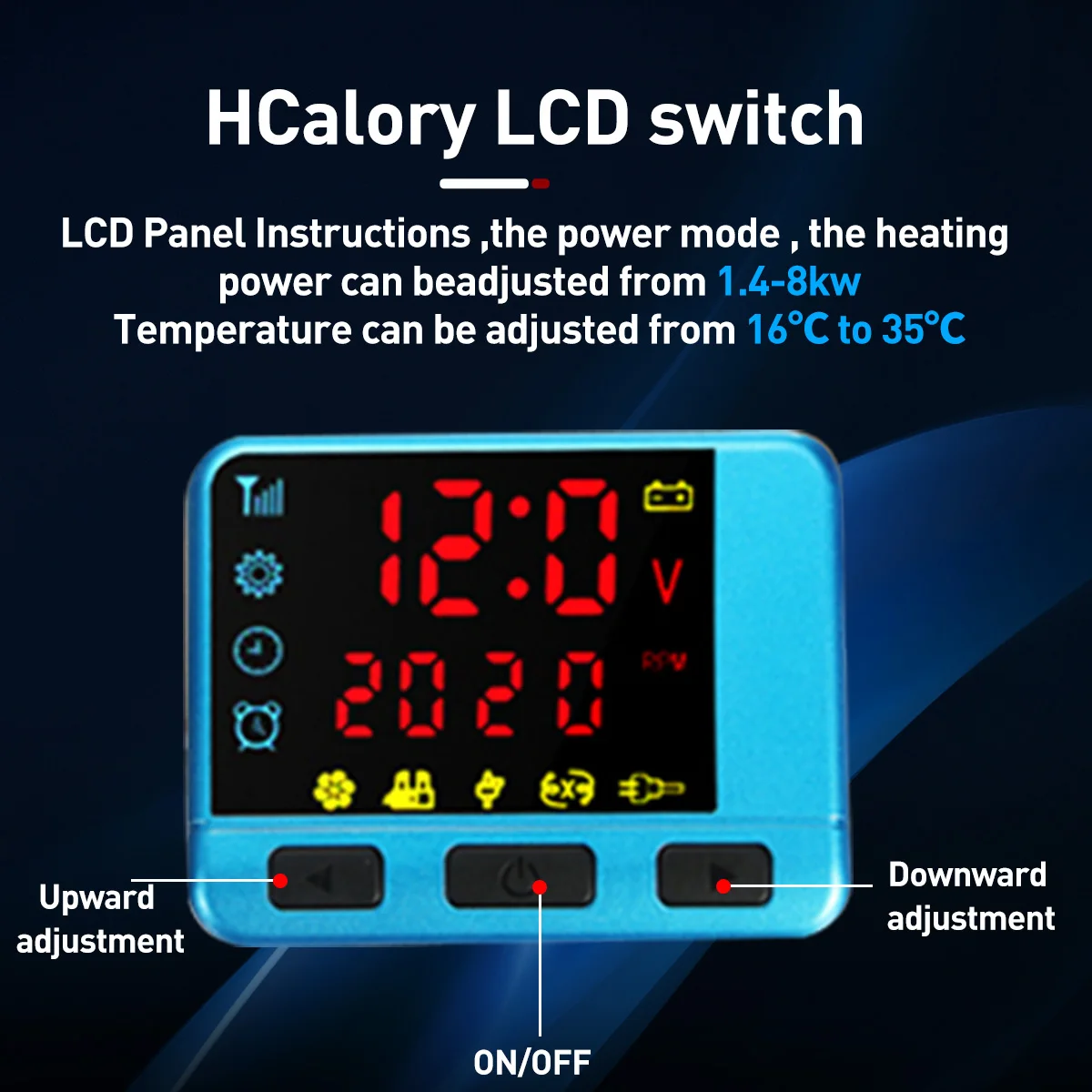 Автомобильный обогреватель Hcalory Все в одном, 8 кВт, 12 В, дизельный воздушный парковочный обогреватель + Новый ЖК-переключатель, пульт дистанционного управления для автомобилей, грузовиков, автобусов, гаражей