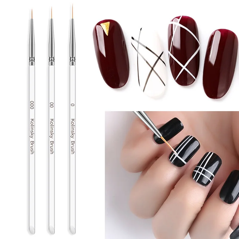 3 шт. кисти для дизайна ногтей тонкие ручка-лайнер для рисования колонский Кристалл акриловая живопись полосы цветок 2 стороны маникюрные инструменты для ногтей набор