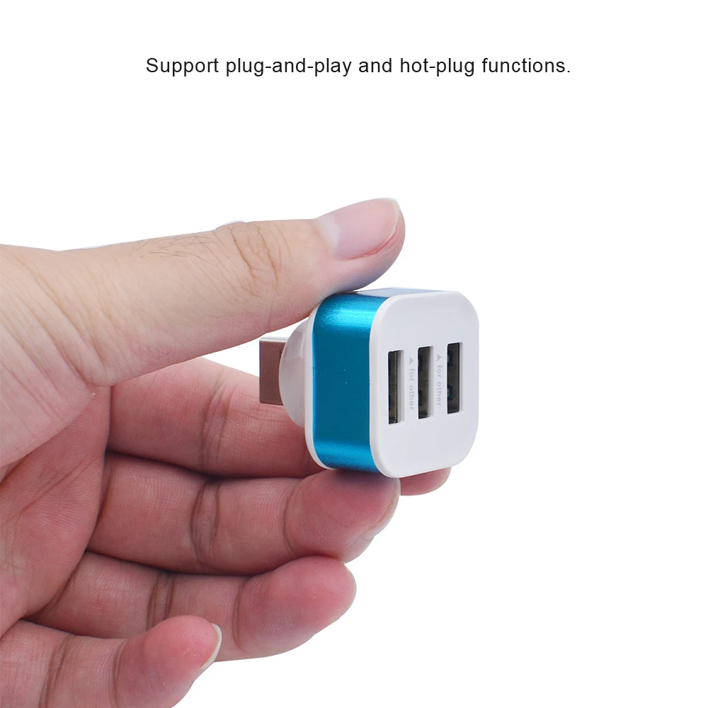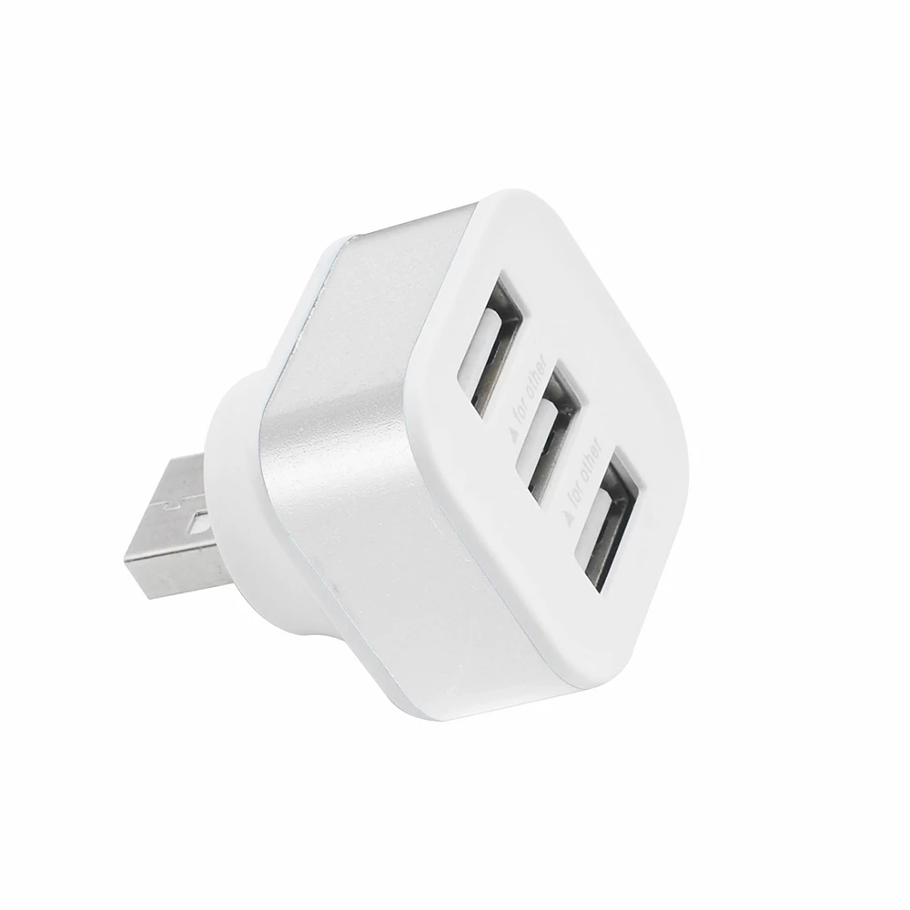 Портативный USB-концентратор телефонный сплиттер, 3 порта, вращающийся штекер, портативный алюминиевый сплав + AB, случайные цвета