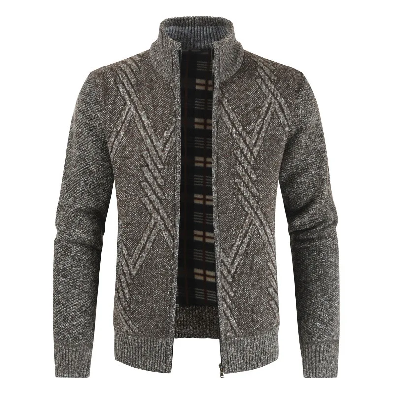 Кардиган мужской с воротником-стойкой, Повседневный хлопковый свитер с геометрическим узором, приталенный силуэт, на молнии, весна-осень