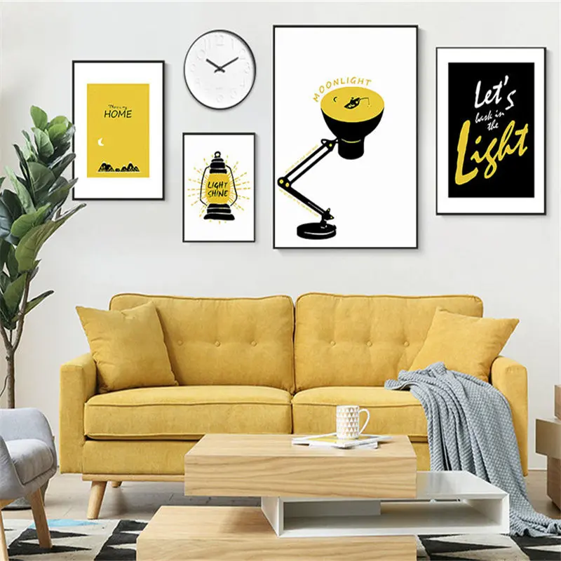 Милый Современный домашний декор, картина, Скандинавская Картина на холсте, настенный плакат, цитата, желтые буквы светильник лый декор, принты для спальни в скандинавском стиле