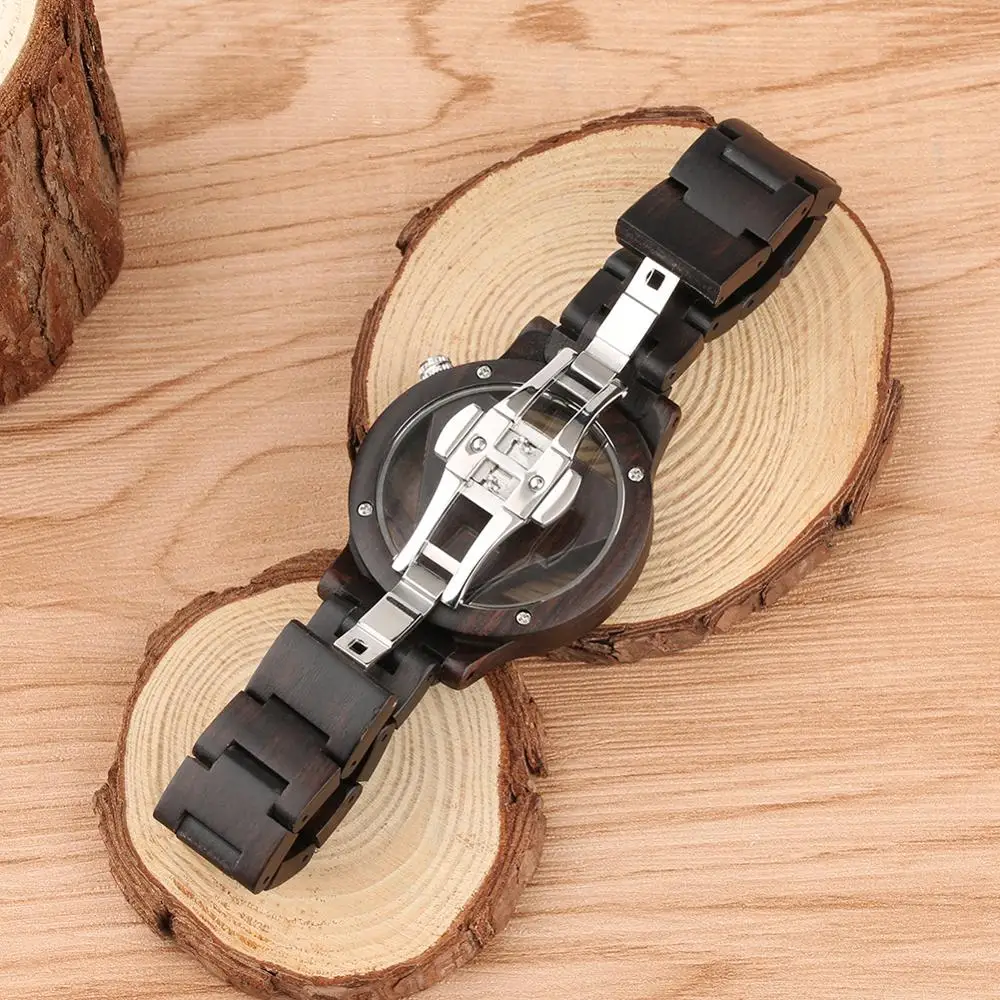 Винтажные перевернутые геометрические треугольные деревянные часы, кварцевые часы, мужские креативные полые часы с циферблатом, полностью деревянный браслет, часы, подарки
