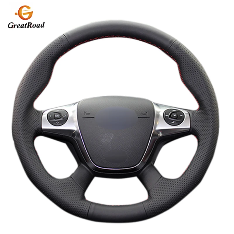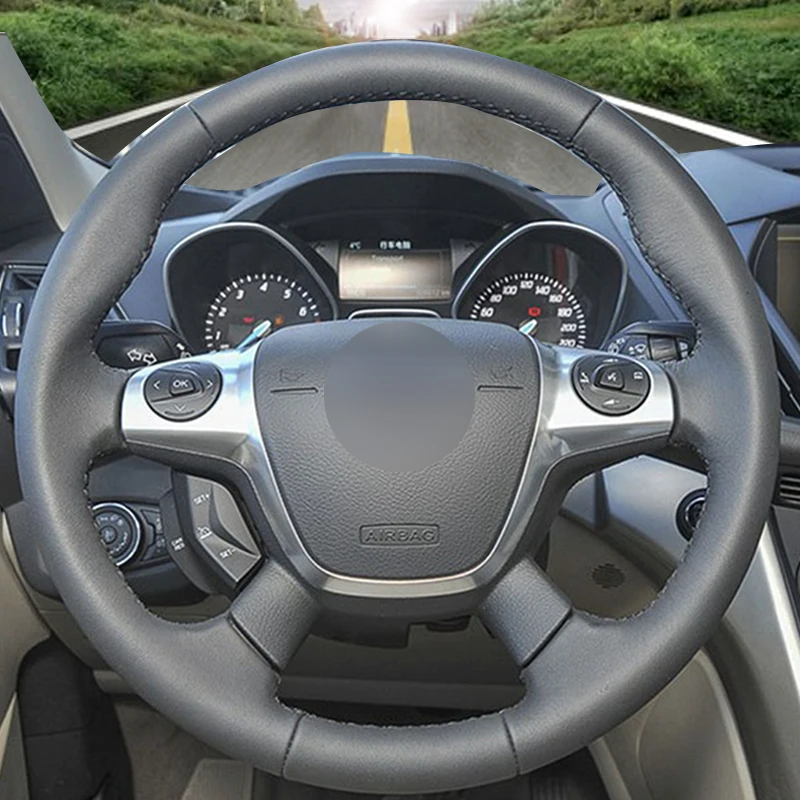 Рука сшитый черный кожаный чехол на руль для Ford Focus 3 2012-2014 KUGA Escape 2013-2016 C-MAX 2011-2018