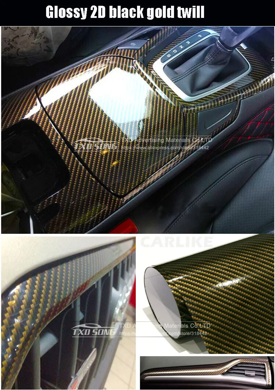 Глянцевая черная Золотая 2d виниловая пленка из углеродного волокна для автомобиля без воздушных пузырей DIY Тюнинг Автомобиля
