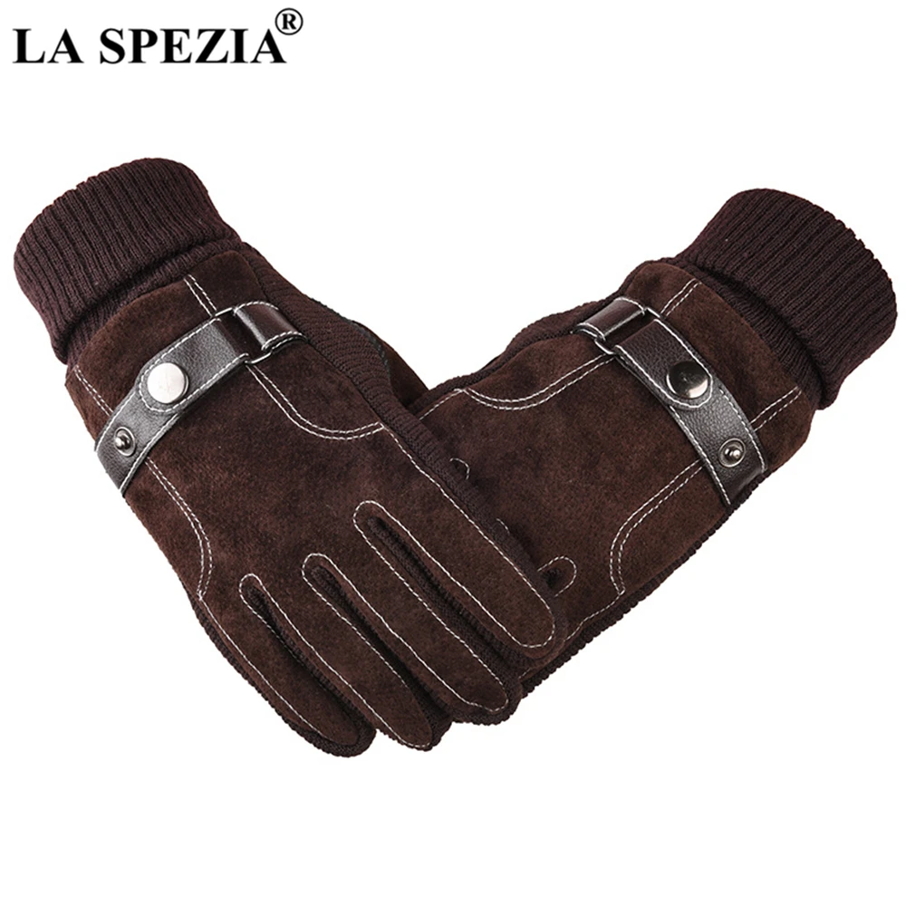 LA SPEZIA зимние перчатки мужские кожаные перчатки из свиной кожи теплые толстые перчатки с сенсорным экраном мужские перчатки для вождения из натуральной кожи