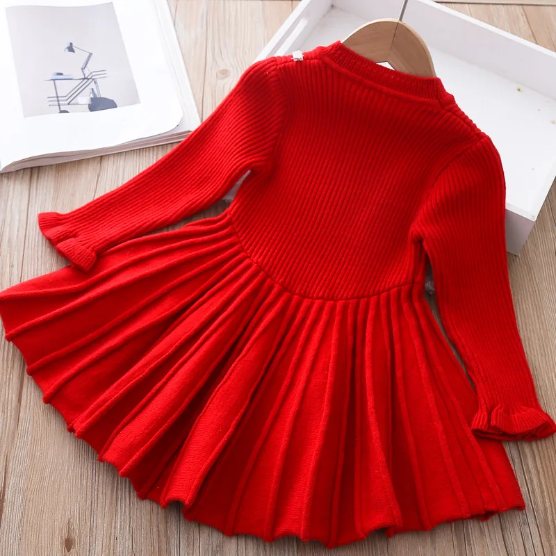 Теплое платье для маленьких девочек, свитер, Милая зимняя детская вязаная одежда, детские топы, рубашки для девочек, шерстяные рождественские платья, 5 лет