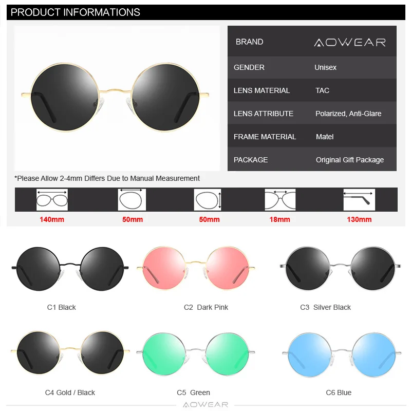 AOWEAR 2022 женские поляризационные круглые солнцезащитные очки, же...