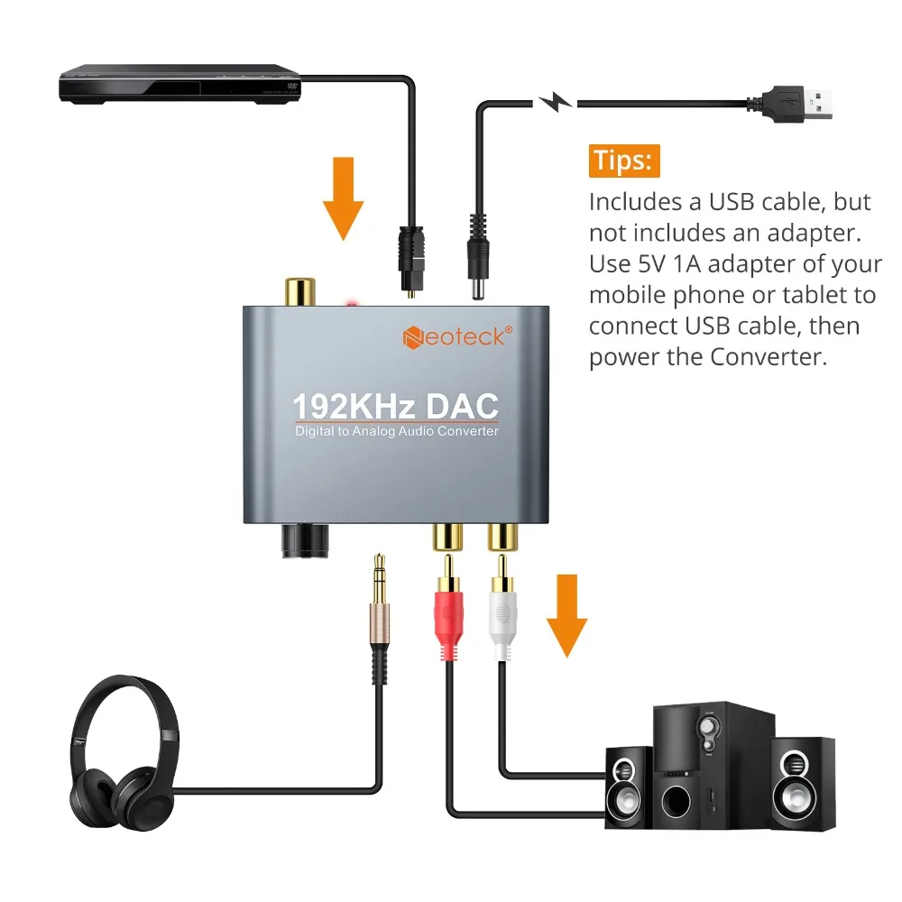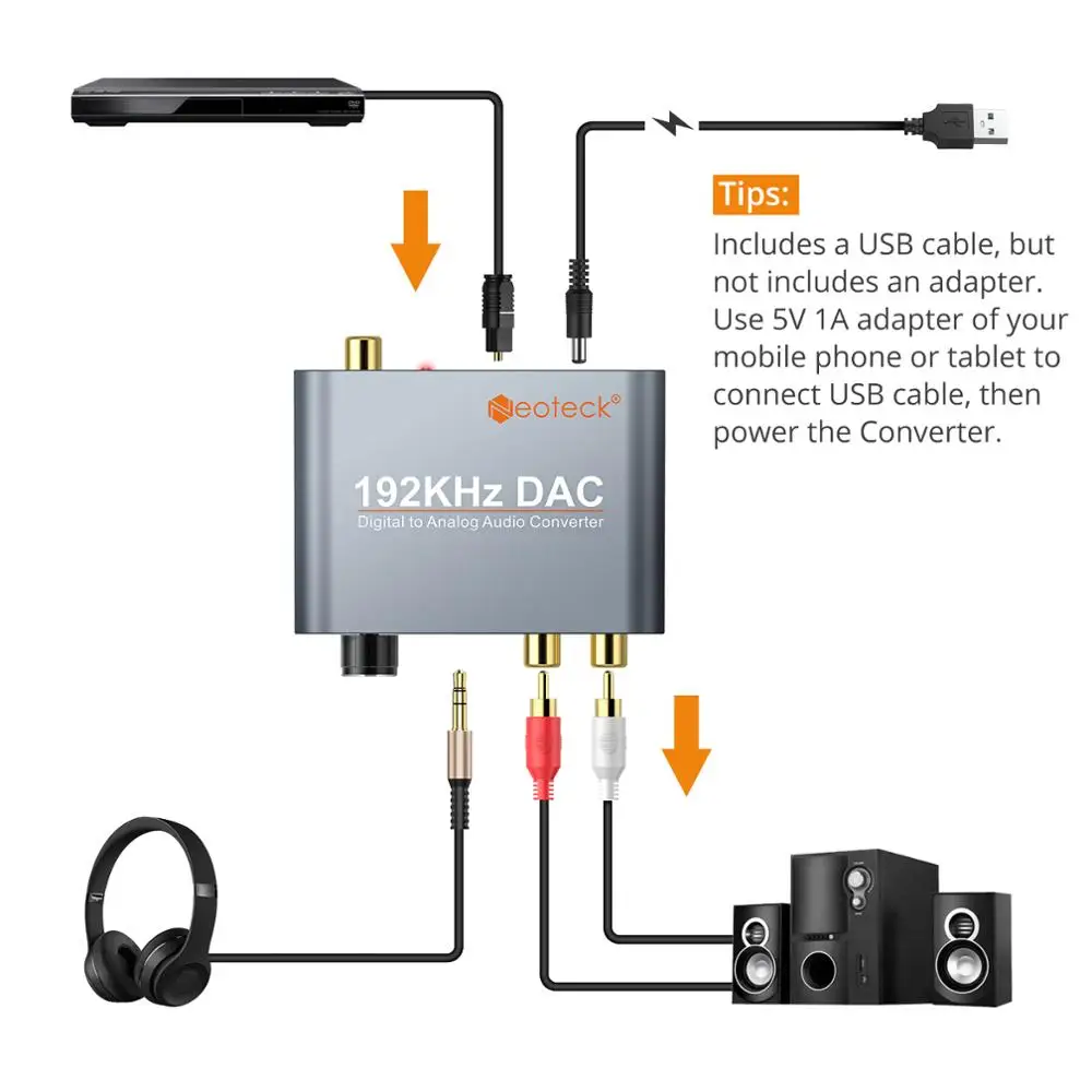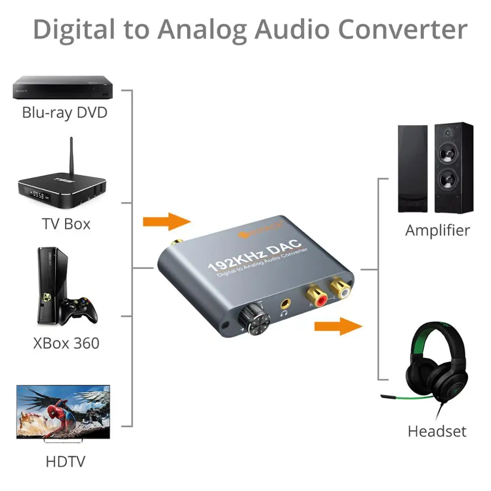Коаксиальный преобразователь Toslink в аналоговый стерео, dac, 3,5 мм, 192 кГц, алюминиевый