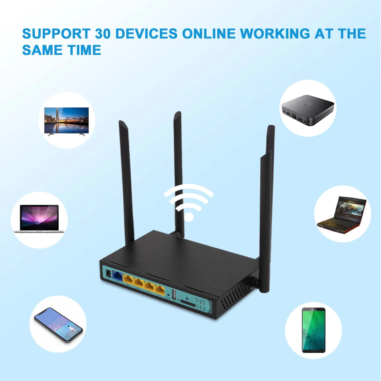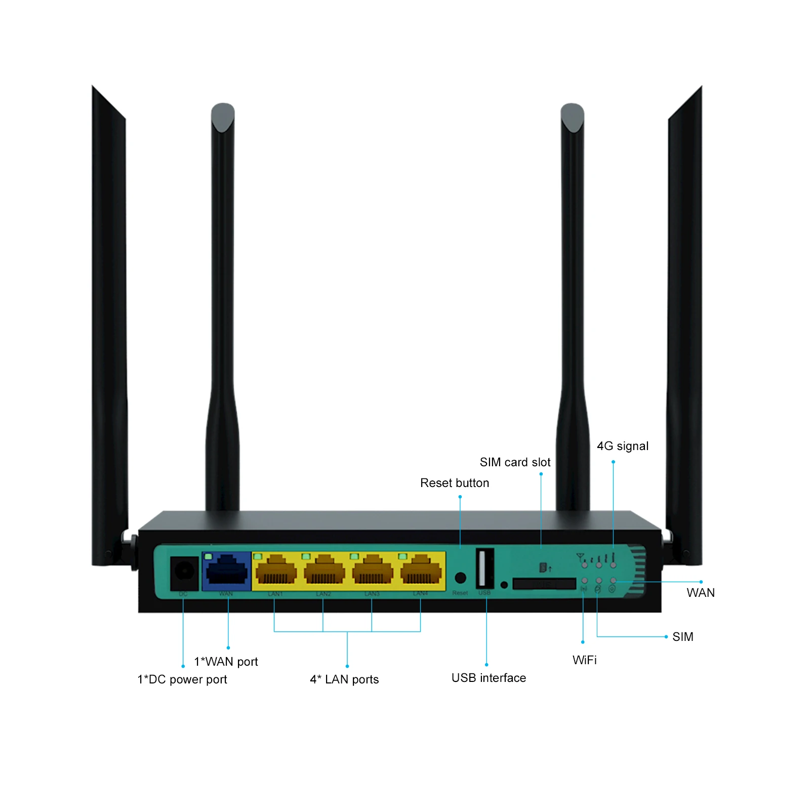 Wi-Fi-роутер 3G4G с SIM-картой, USB 2,0, 300 Мбитс, 2,4 ГГц, чип, Qualcomm, 16M + 128M, 1 вам + 4 LAN, WE2416, до 30 комплектов