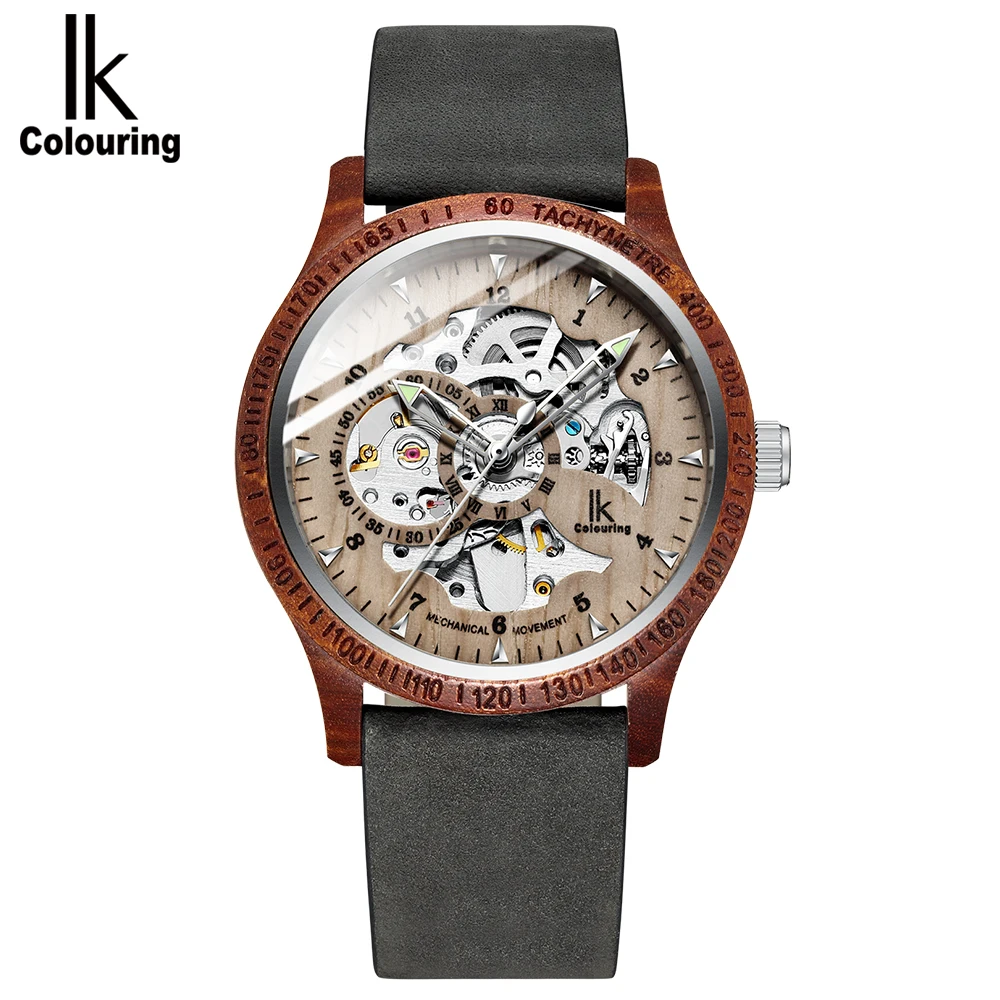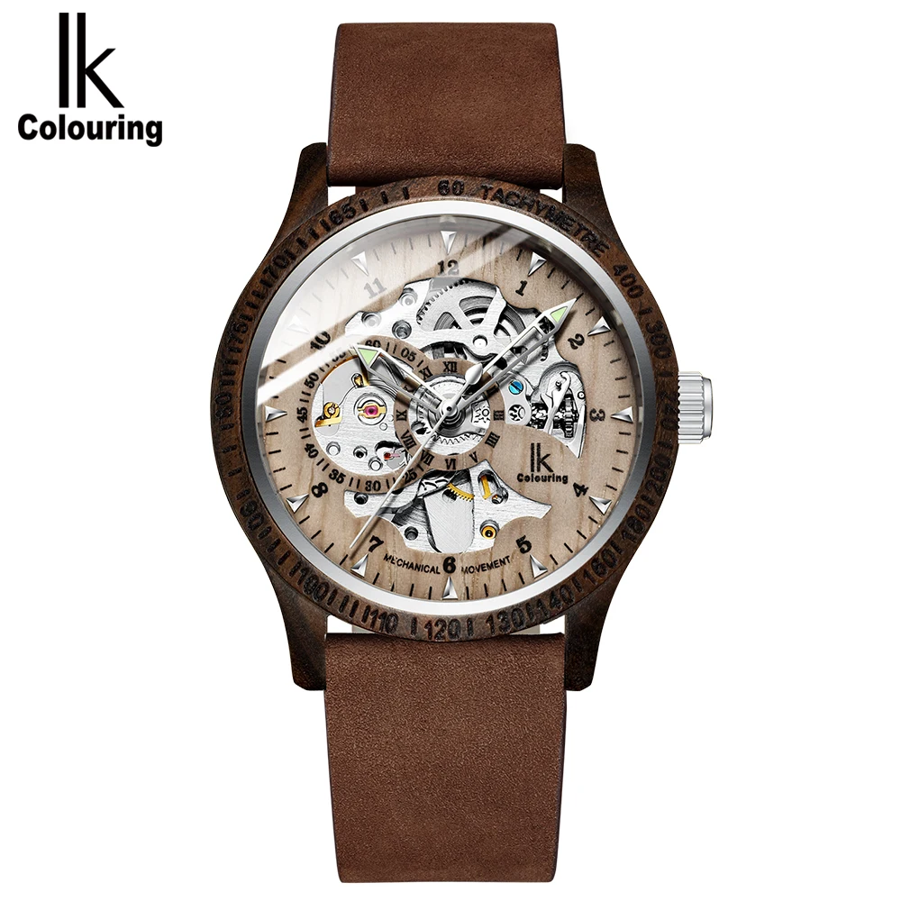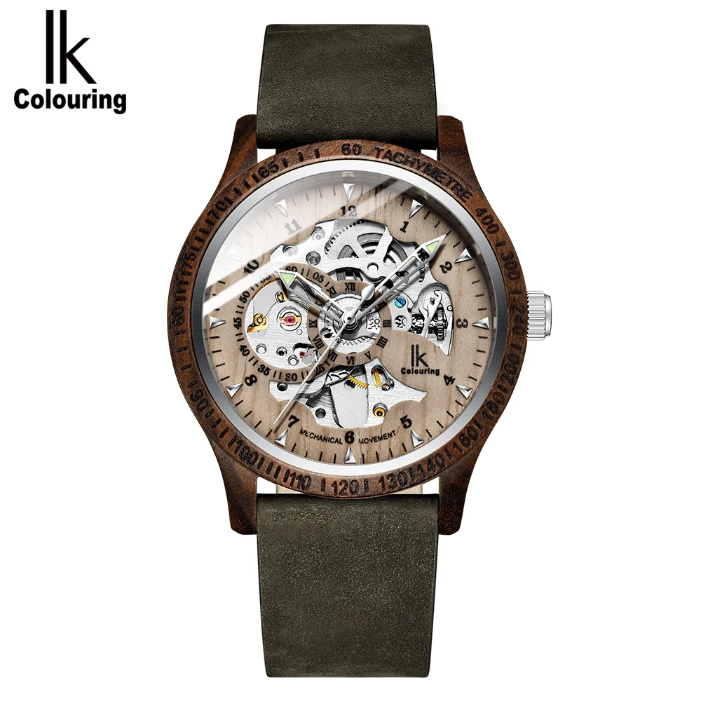 IK раскраска, мужские часы, Модный повседневный Деревянный чехол, C...