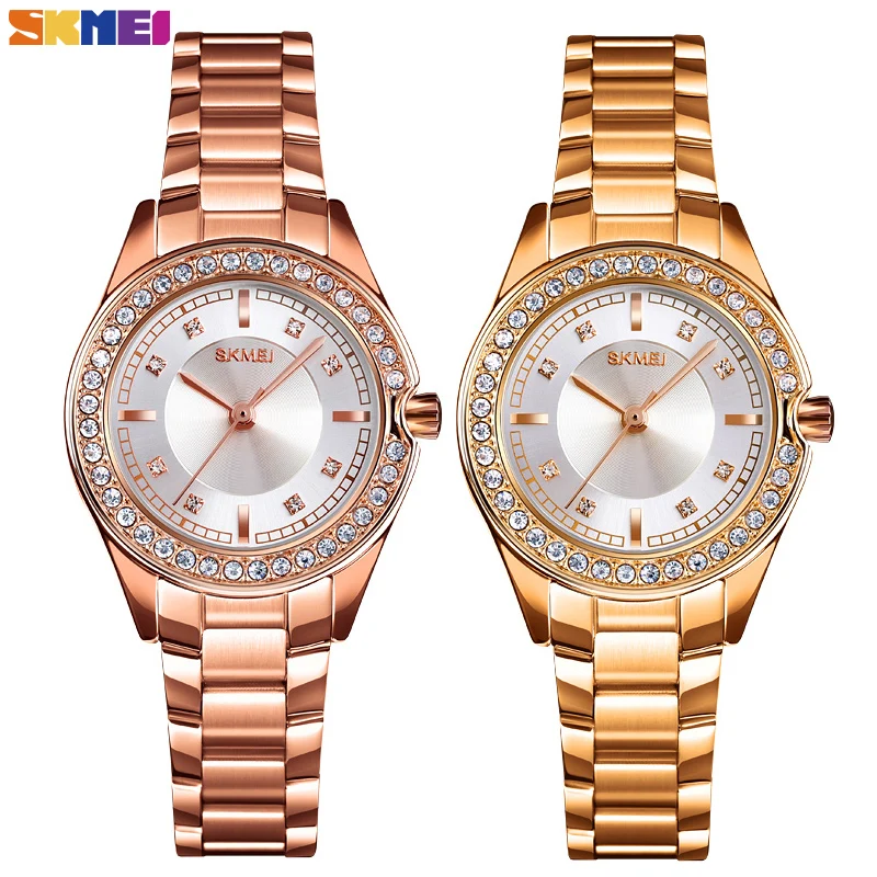 SKMEI Модные женские кварцевые часы, инновационные наручные часы с бриллиантами, женские часы, водонепроницаемые, с ремешком из нержавеющей стали, женские часы 1534
