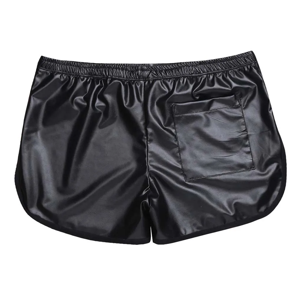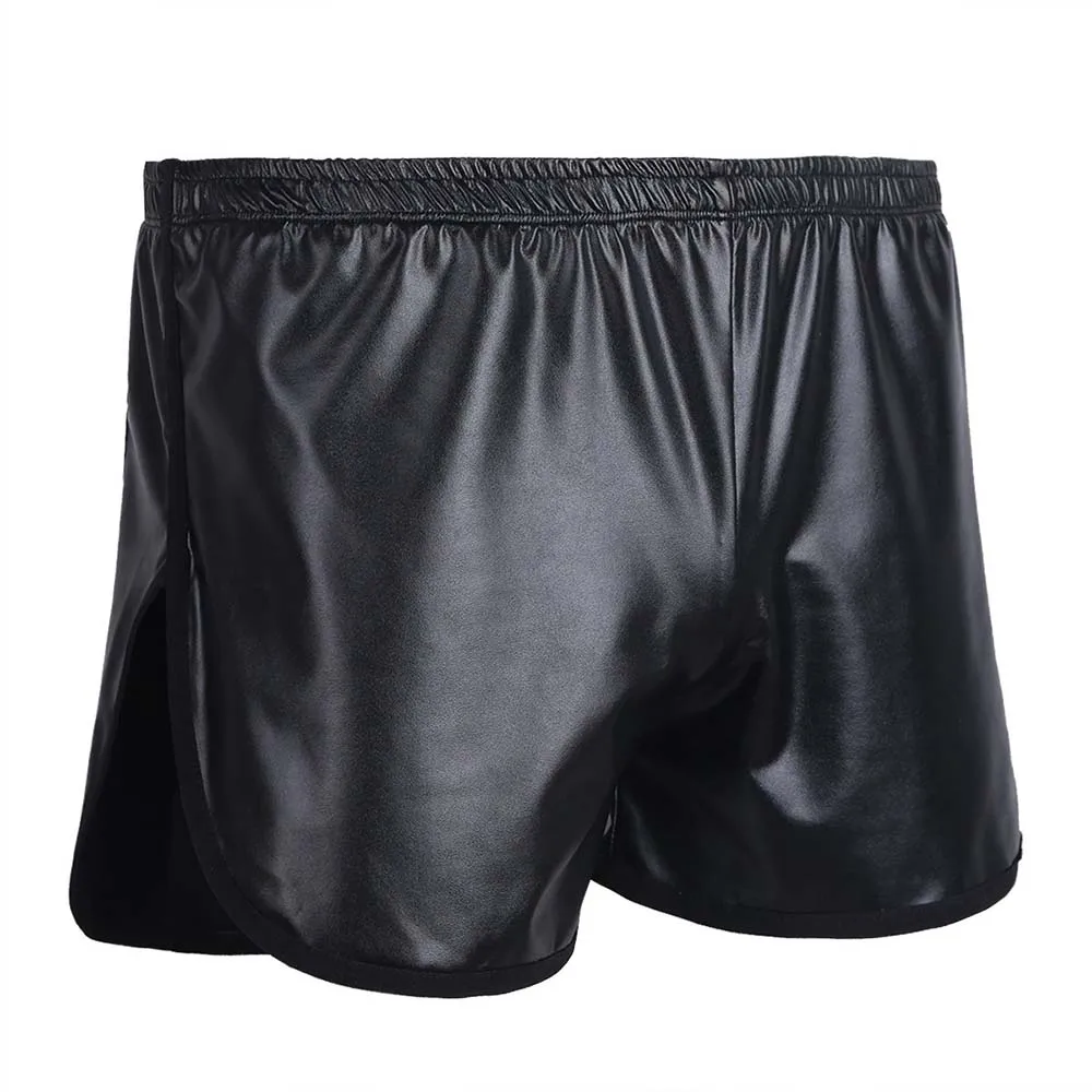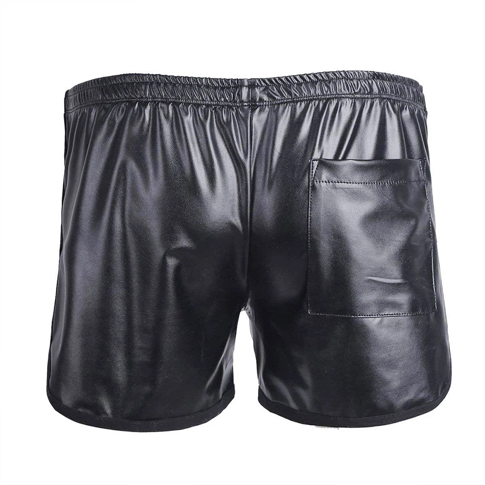 Мужские блестящие шорты-боксеры из искусственной кожи, эластичная ткань.