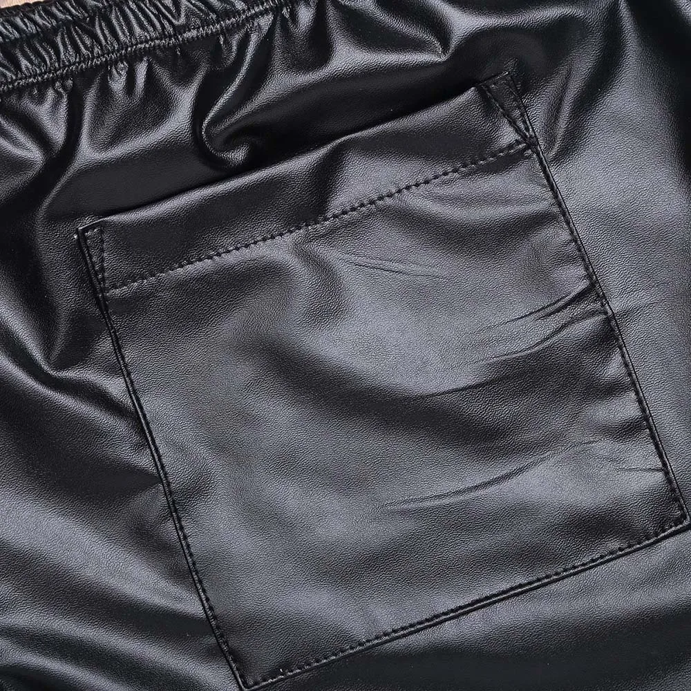 # S-XXL черные мужские спортивные шорты-боксеры из искусственной кожи с задним карманом