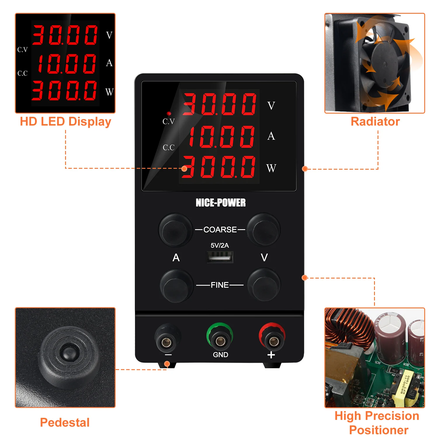 Лабораторный блок питания постоянного тока, Регулируемый мини-импульсный настольный источник питания, цифровой стабилизатор тока с переменным блоком питания 30 в 10 А, хорошая мощность
