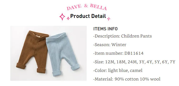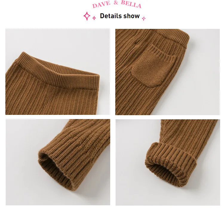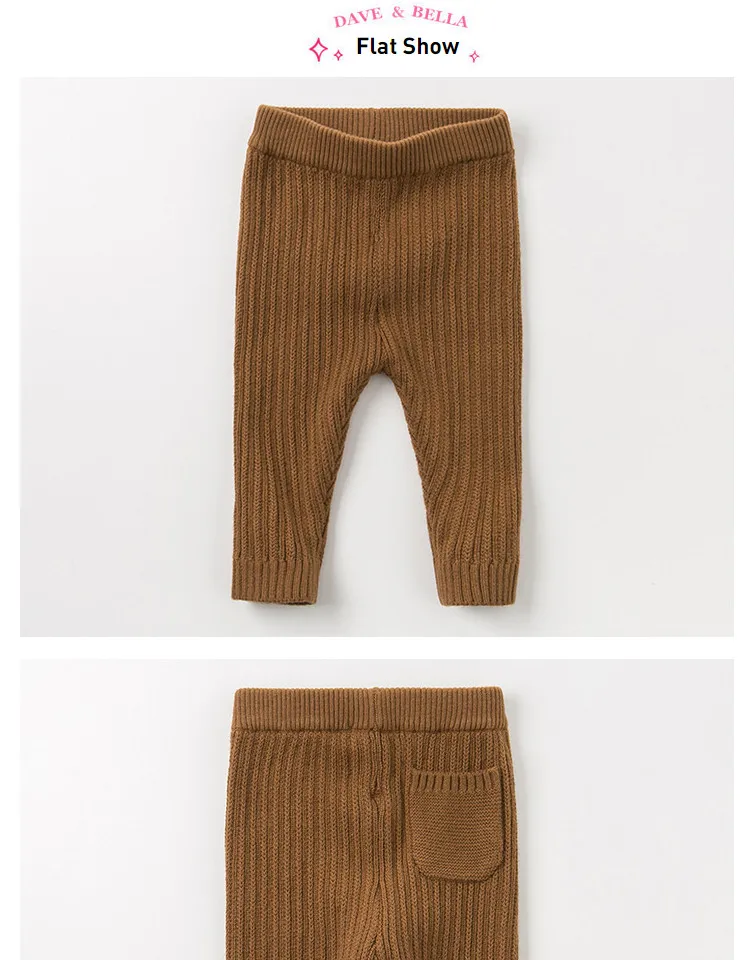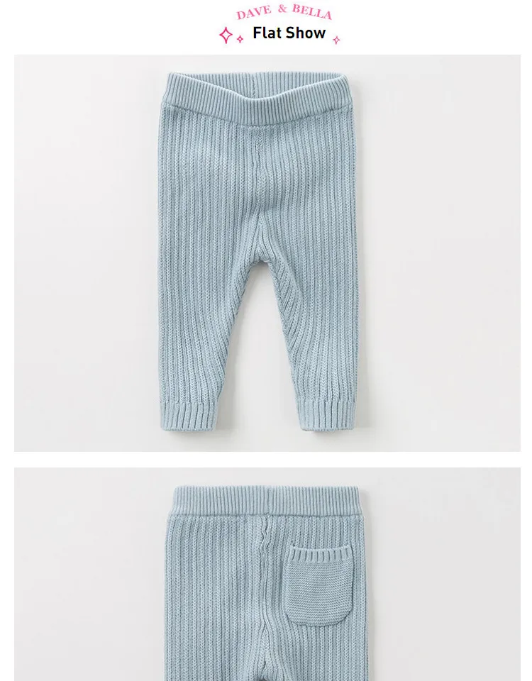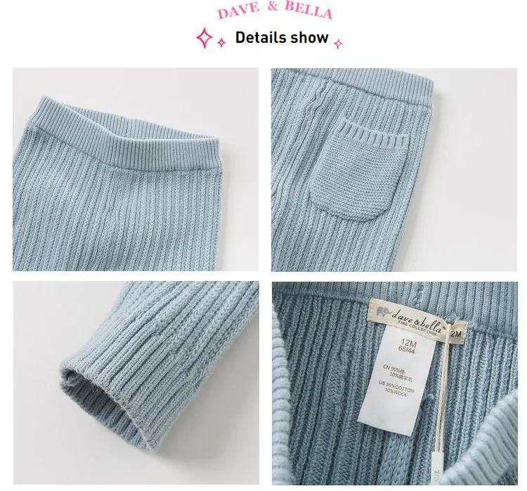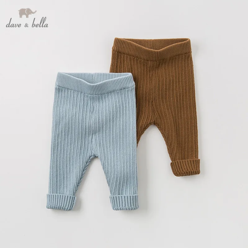 DB11614 dave bella зимние детские штаны унисекс, модные однотонные шерстяные штаны с карманами, детские длинные штаны, штаны для младенцев