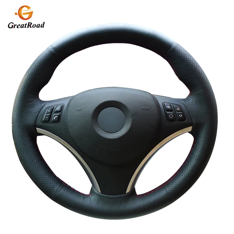 Сшитый вручную черный чехол на руль из натуральной кожи для BMW E90 320i 325i 330i 335i E87 120i 130i 120d