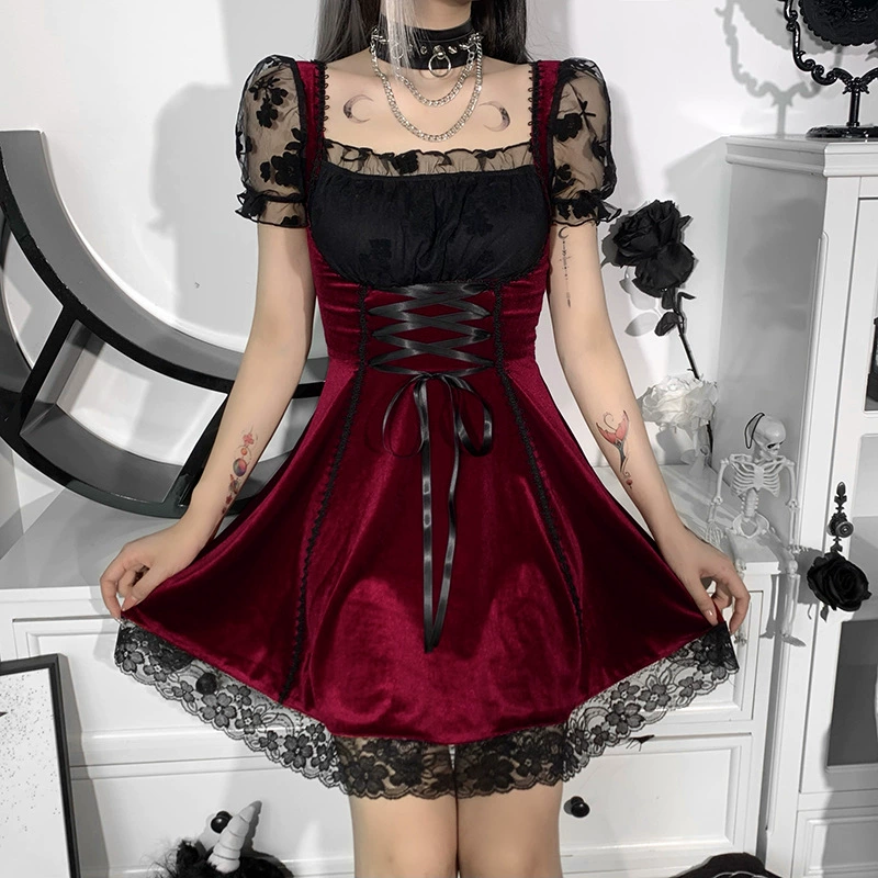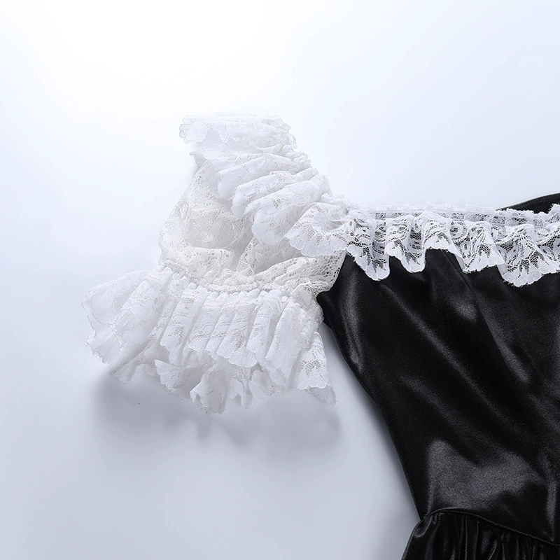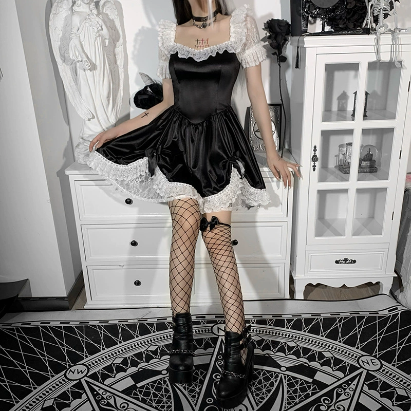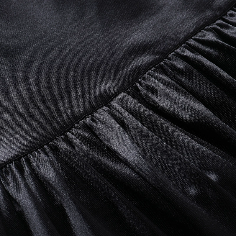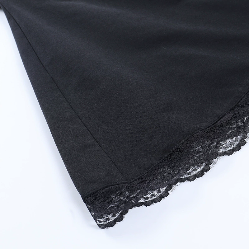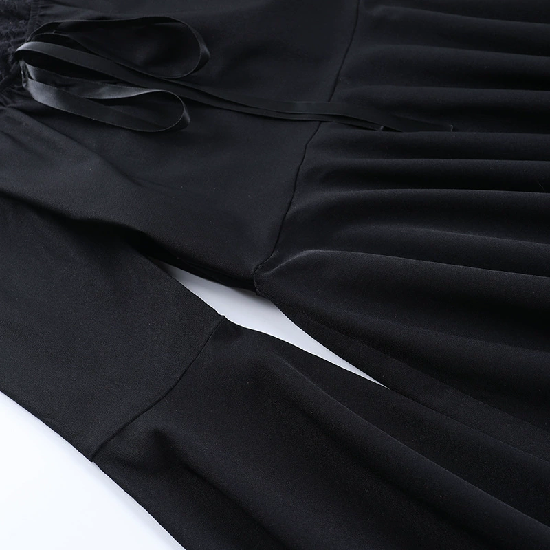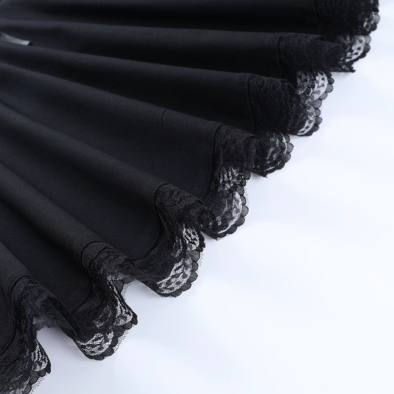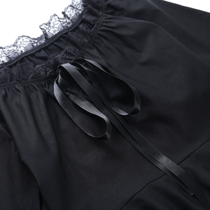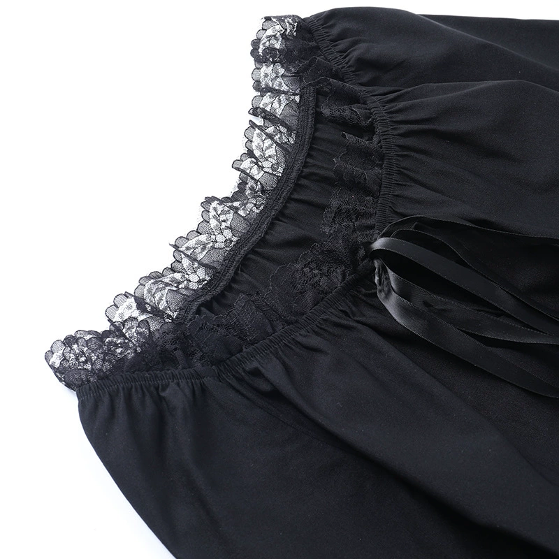 Женское платье с вырезом лодочкой, однотонное черное платье в готическом стиле с пышными рукавами, кружевной подол с длинными расклешенными рукавами, размеры S, M, L, 2019