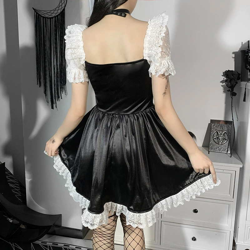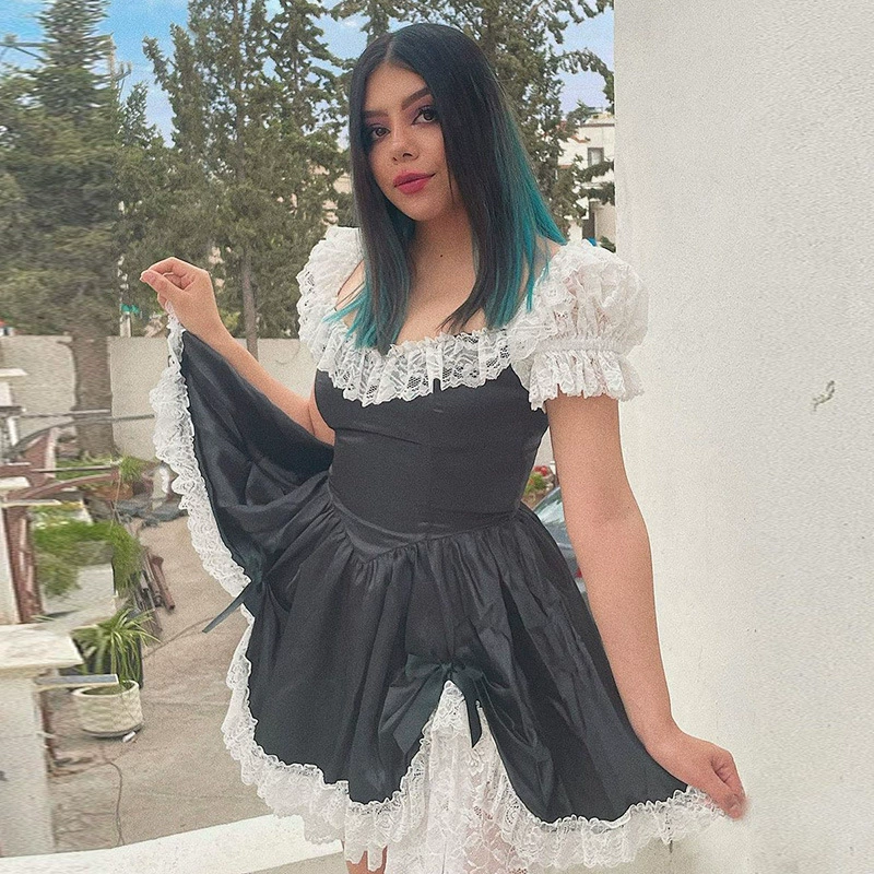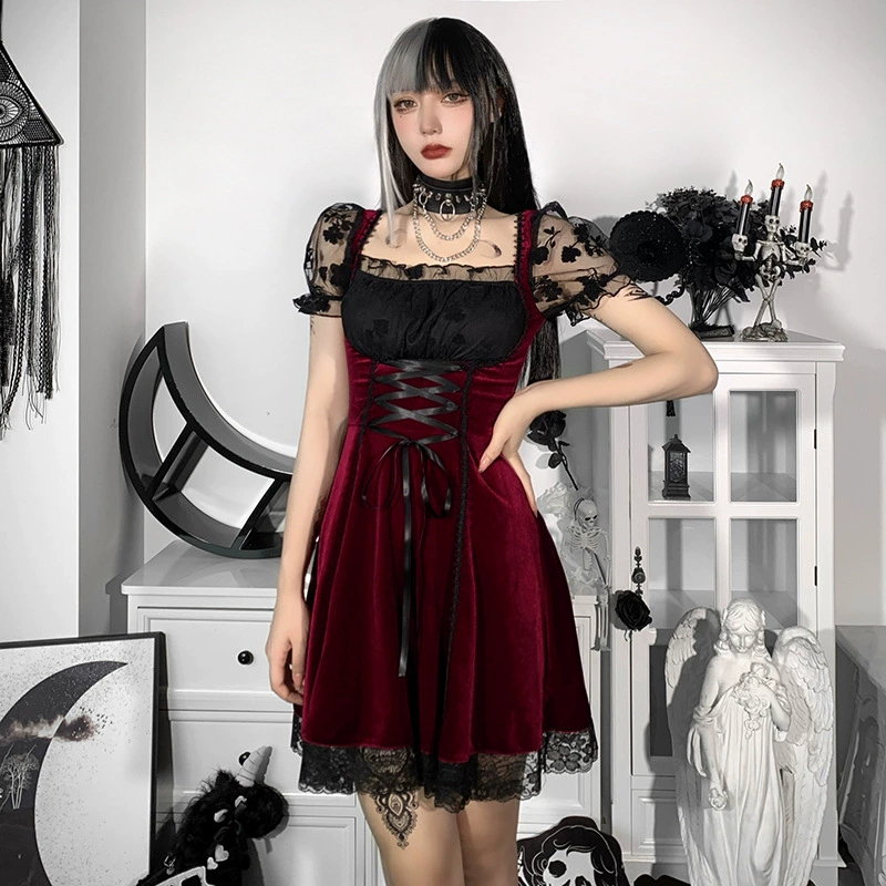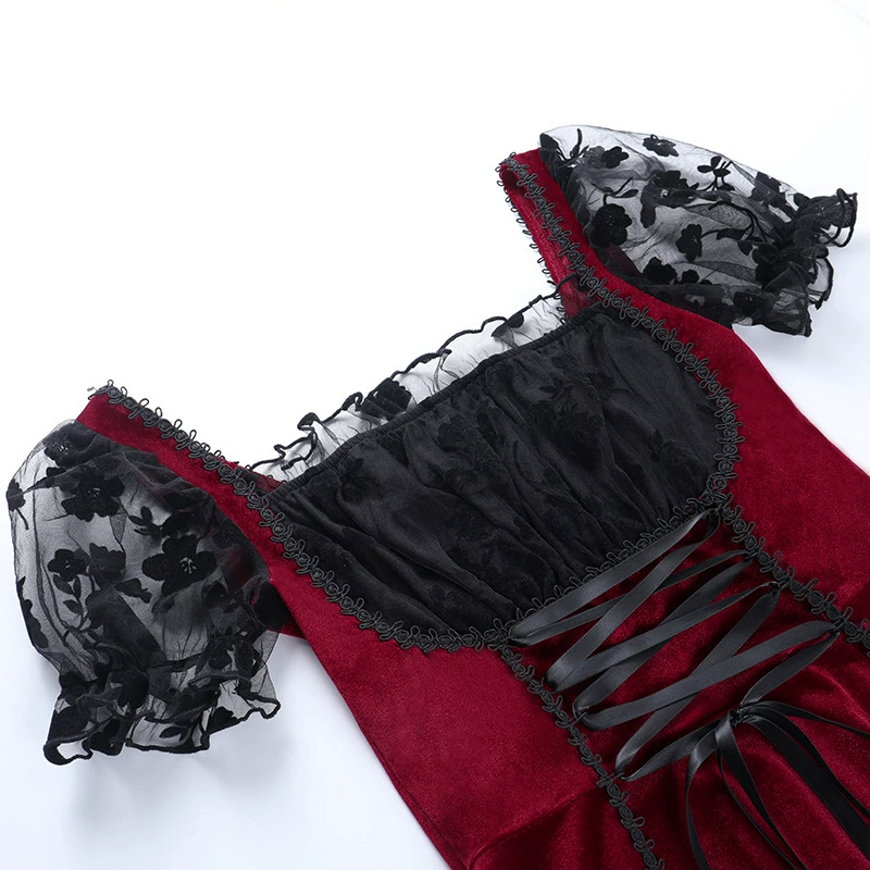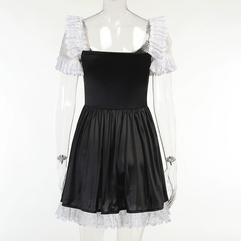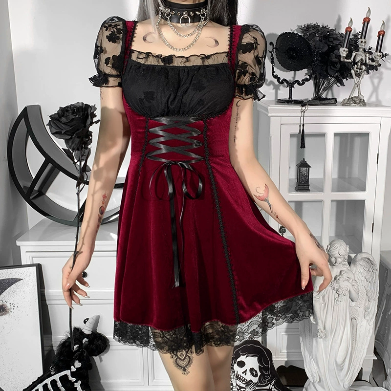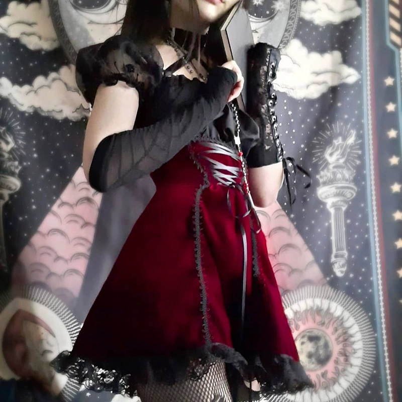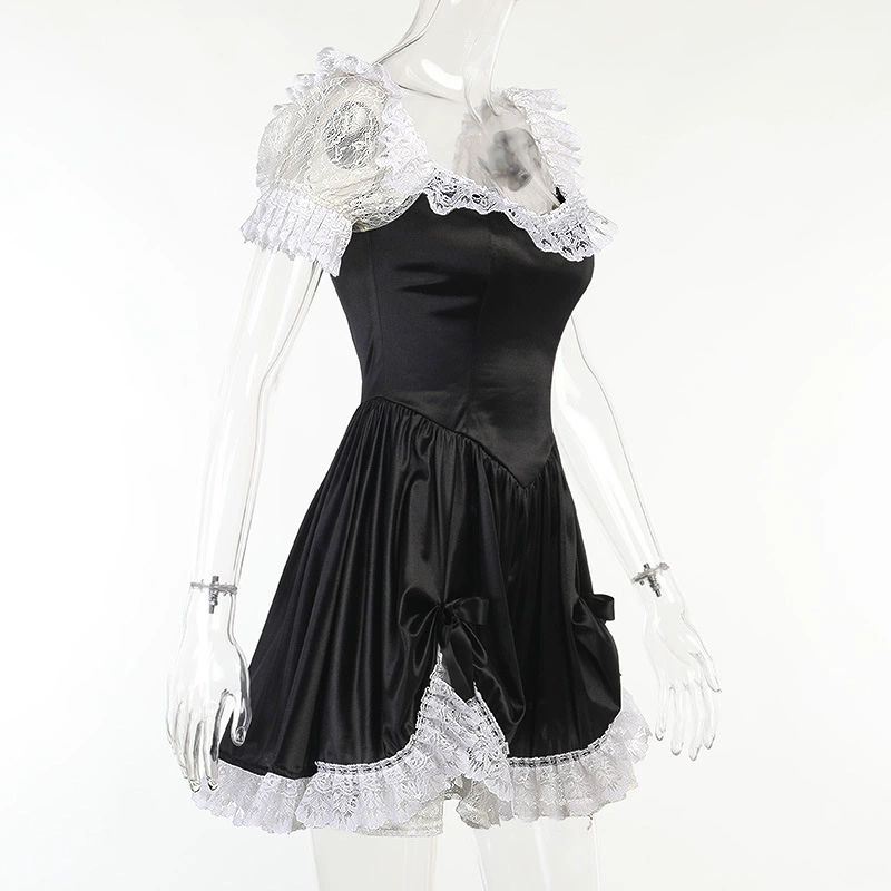 Женское платье с вырезом лодочкой, однотонное черное платье в готическом стиле с пышными рукавами, кружевной подол с длинными расклешенными рукавами, размеры S, M, L, 2019