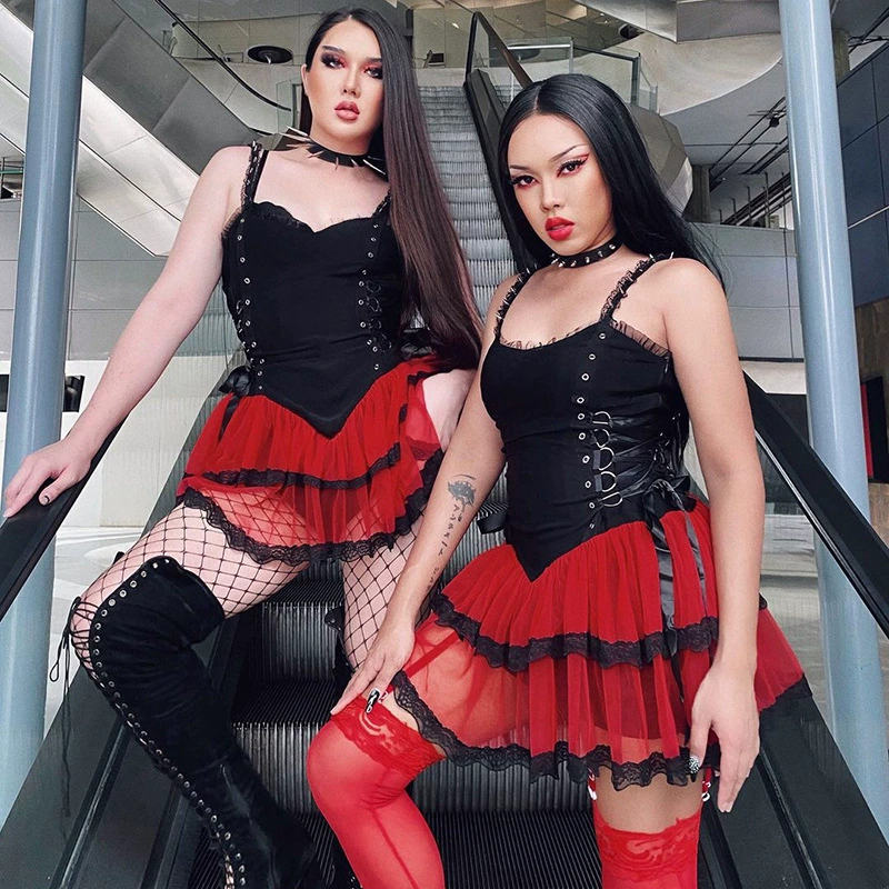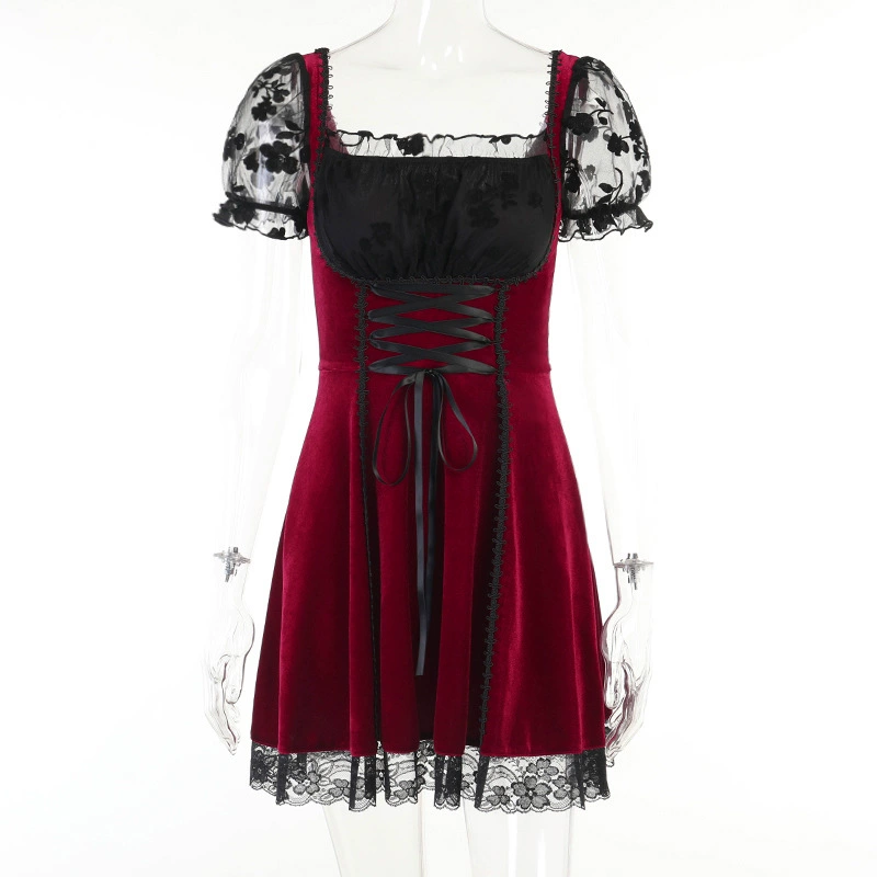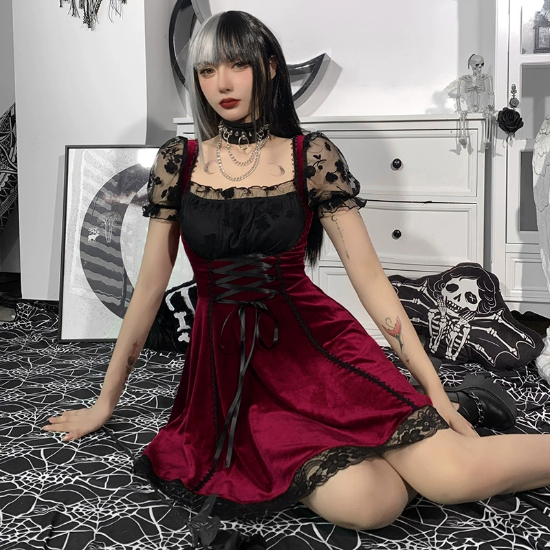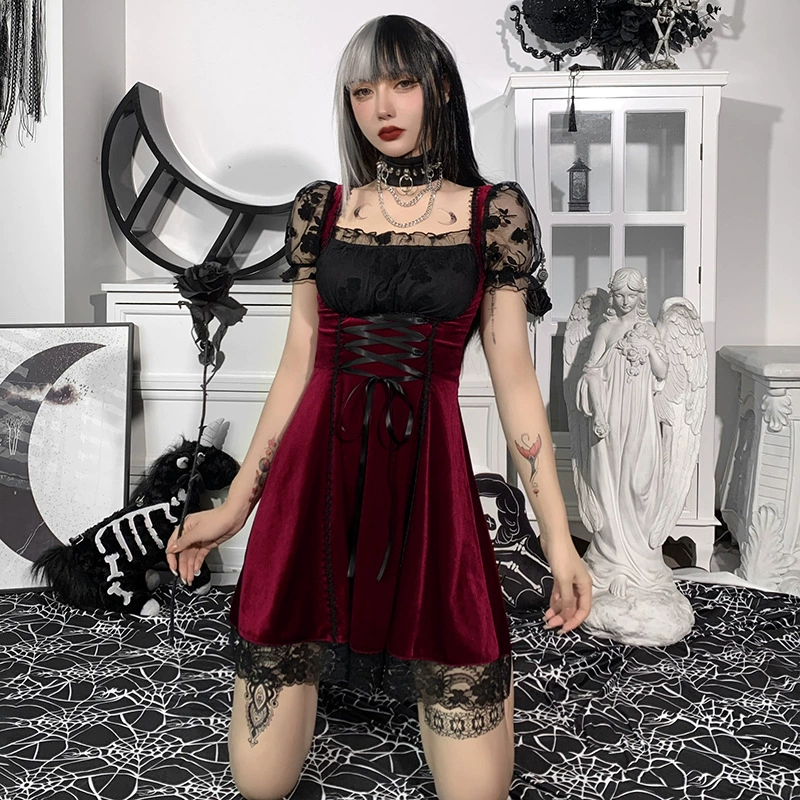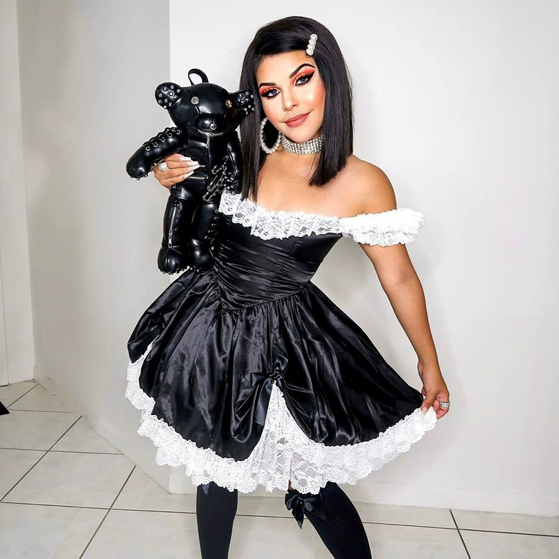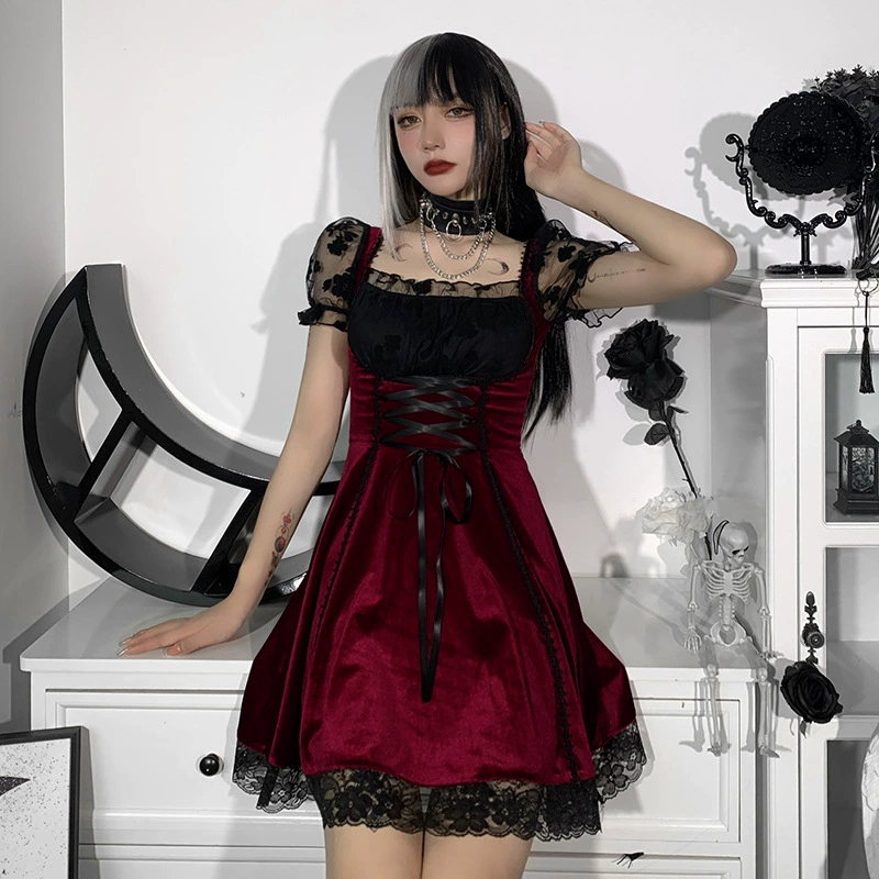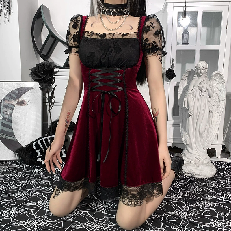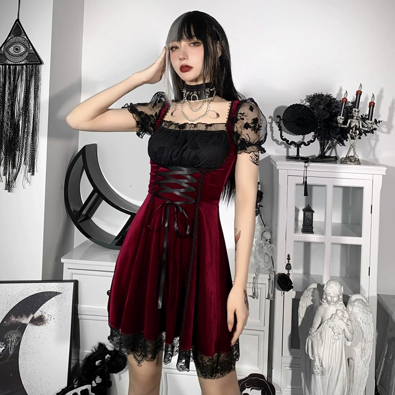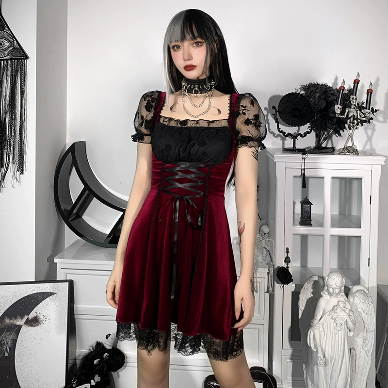 Женское платье с вырезом лодочкой, однотонное черное платье в готическом стиле с пышными рукавами, кружевной подол с длинными расклешенными рукавами, размеры S, M, L, 2019