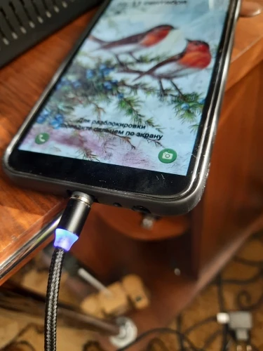 зарядка хорошая, светится, пока не достанешь из розетки, провод надёжный, магнит притягивает хорошо
