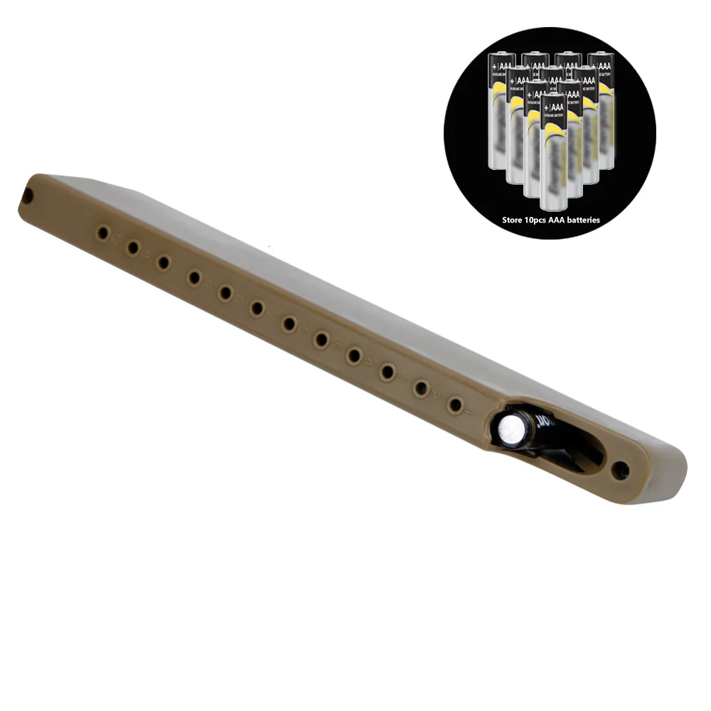 Он способен хранить 10 батареек AAA или 8 батарей CR123A/16340. И индикатор «round count» на задней части батарейного зажима сразу показывает, сколько осталось.