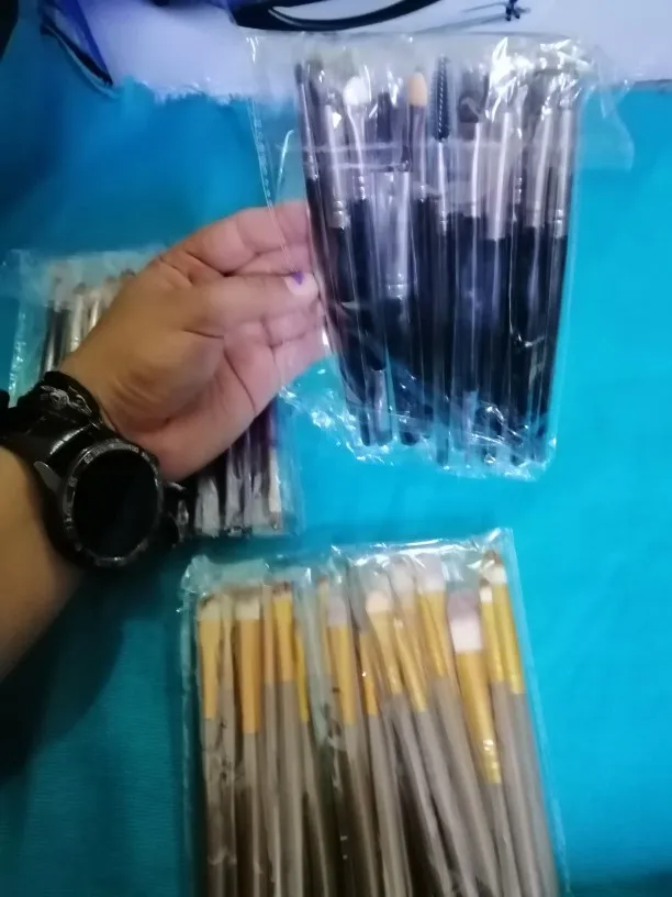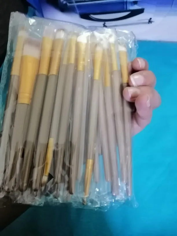 Они такие же, как на фото, только то, что в некоторых кистях ручка поливается, я думаю, что они скоро будут падать, а в других волоски кривые, они не имеют правильной формы остальное хорошо упаковано, цена нормальная.